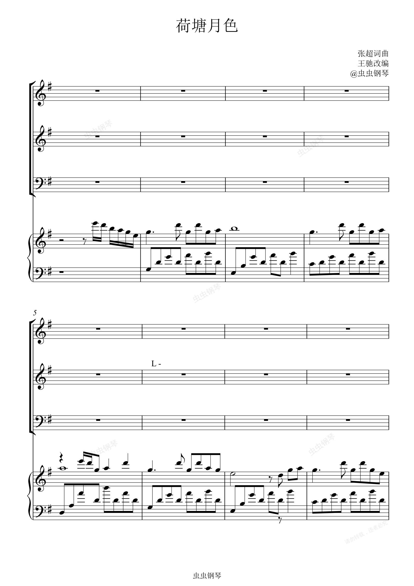 钢琴谱:荷塘月色 - 凤凰传奇 三声部合唱