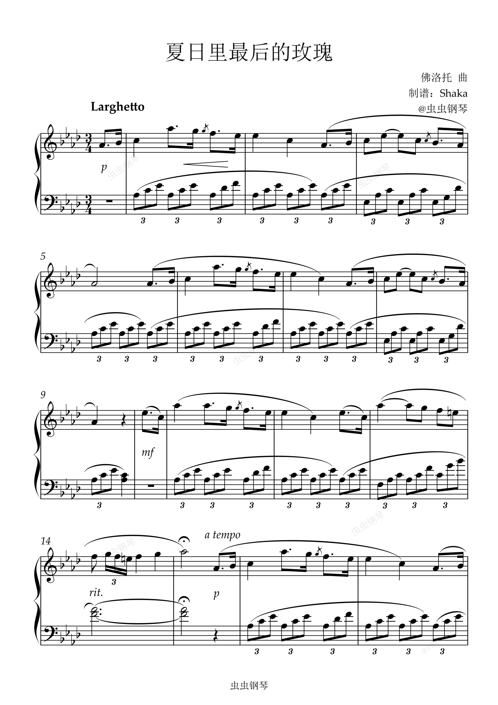 钢琴谱:夏日里最后的玫瑰 降A调唯美版 ZYY 考级曲目