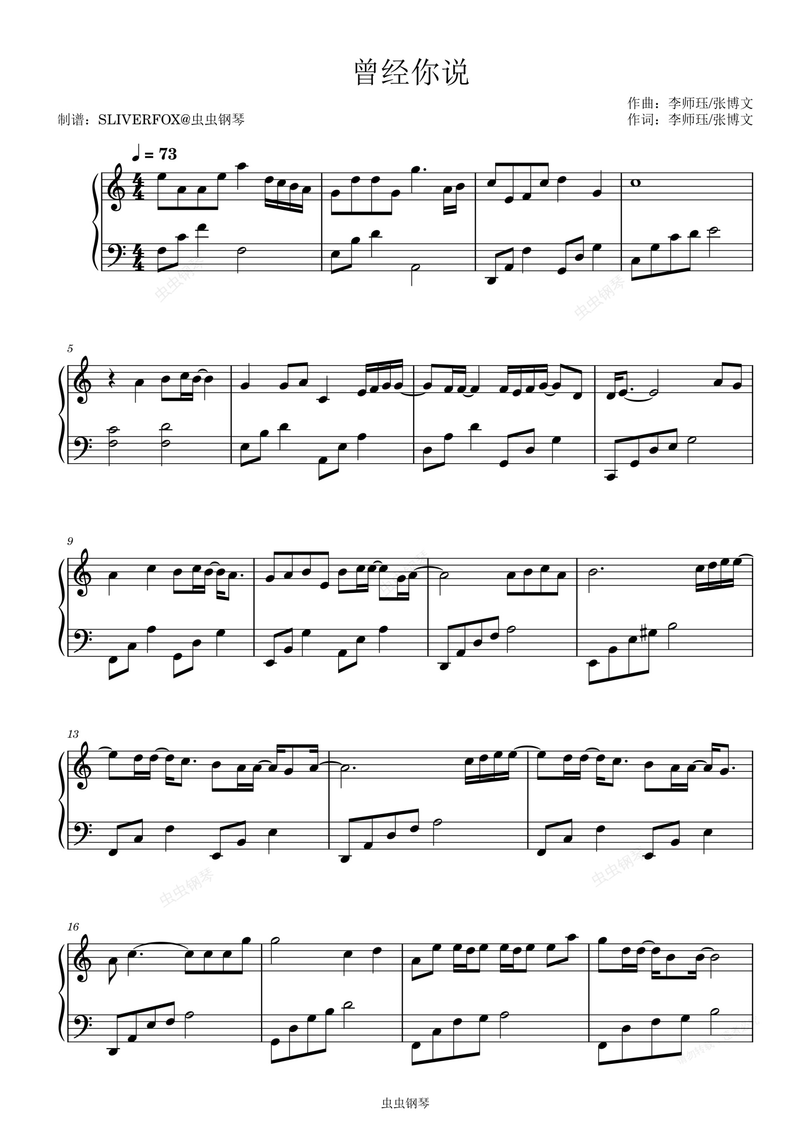 钢琴谱:《曾经你说》成人流行钢琴谱C调 安静忧伤旋律