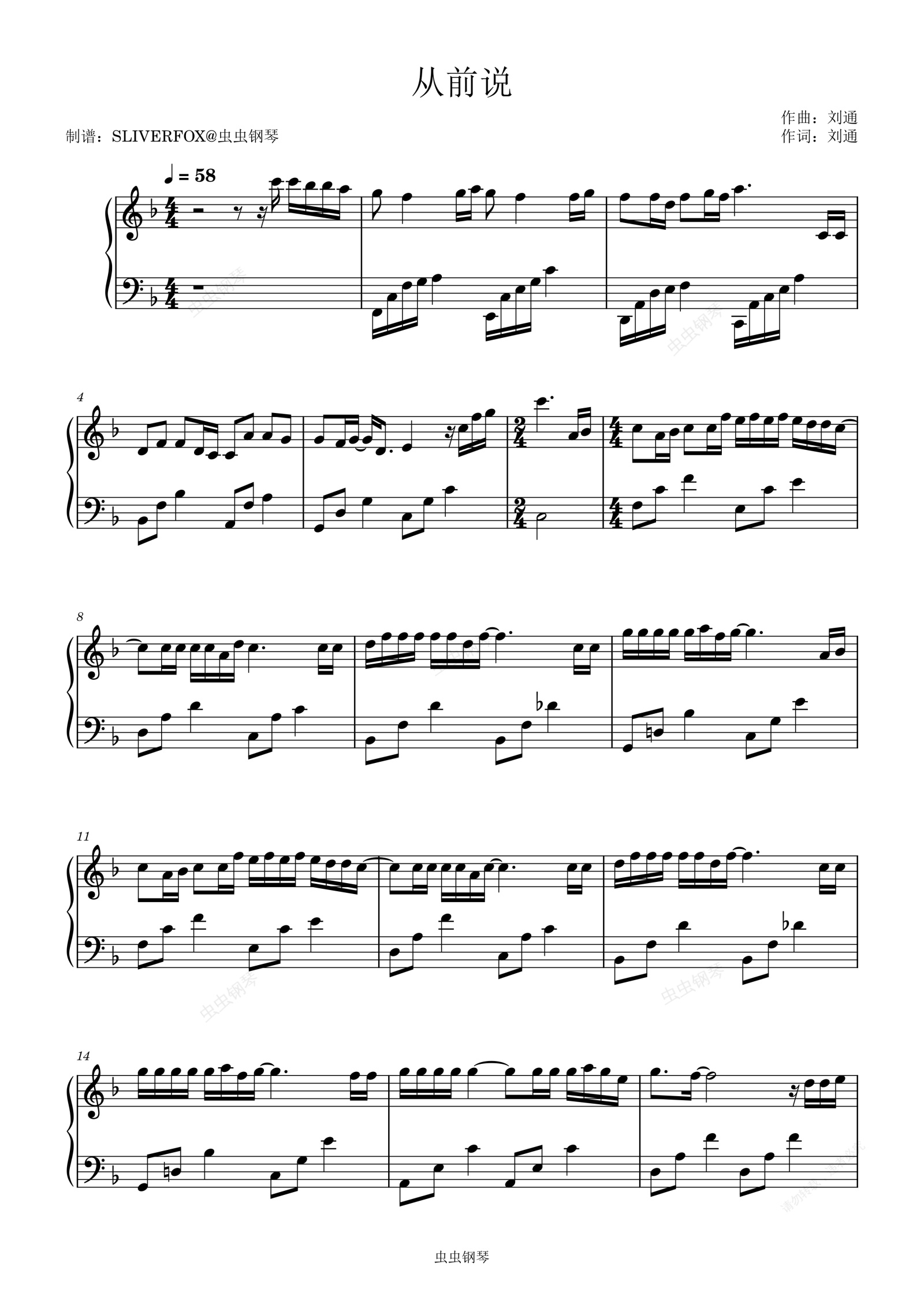 钢琴谱:《从前说》成人流行钢琴谱F调