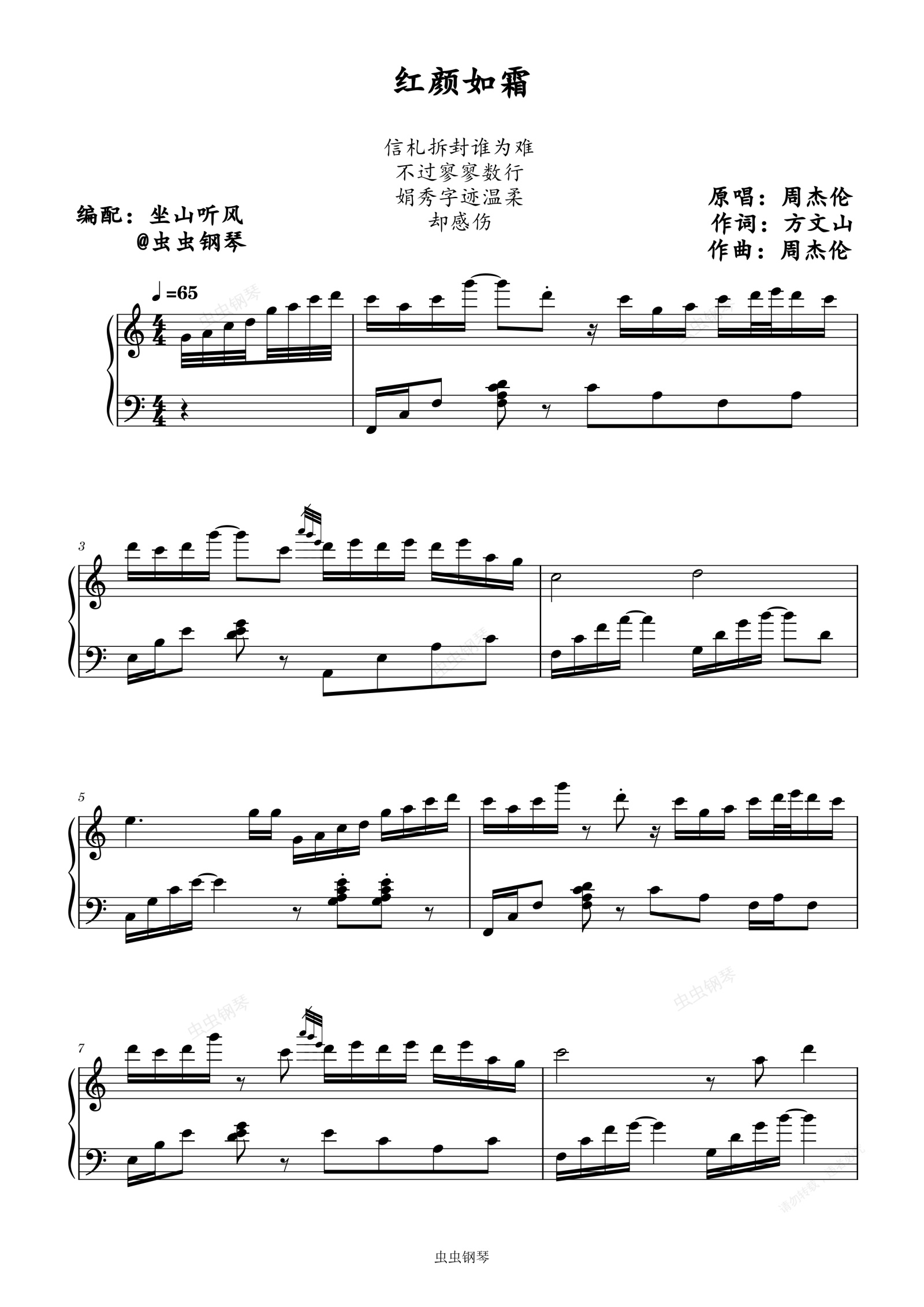 钢琴谱:红颜如霜——周杰伦《最伟大的作品》C调