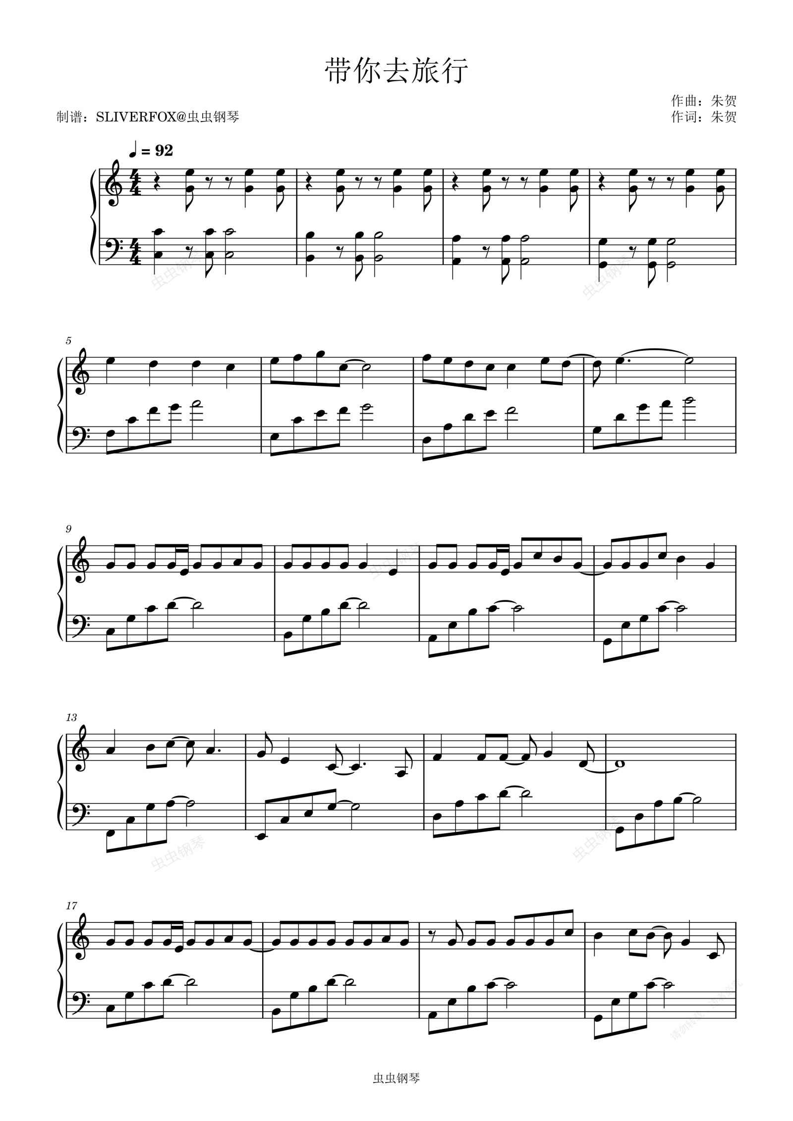 钢琴谱:《带你去旅行》成人简易流行钢琴谱C调