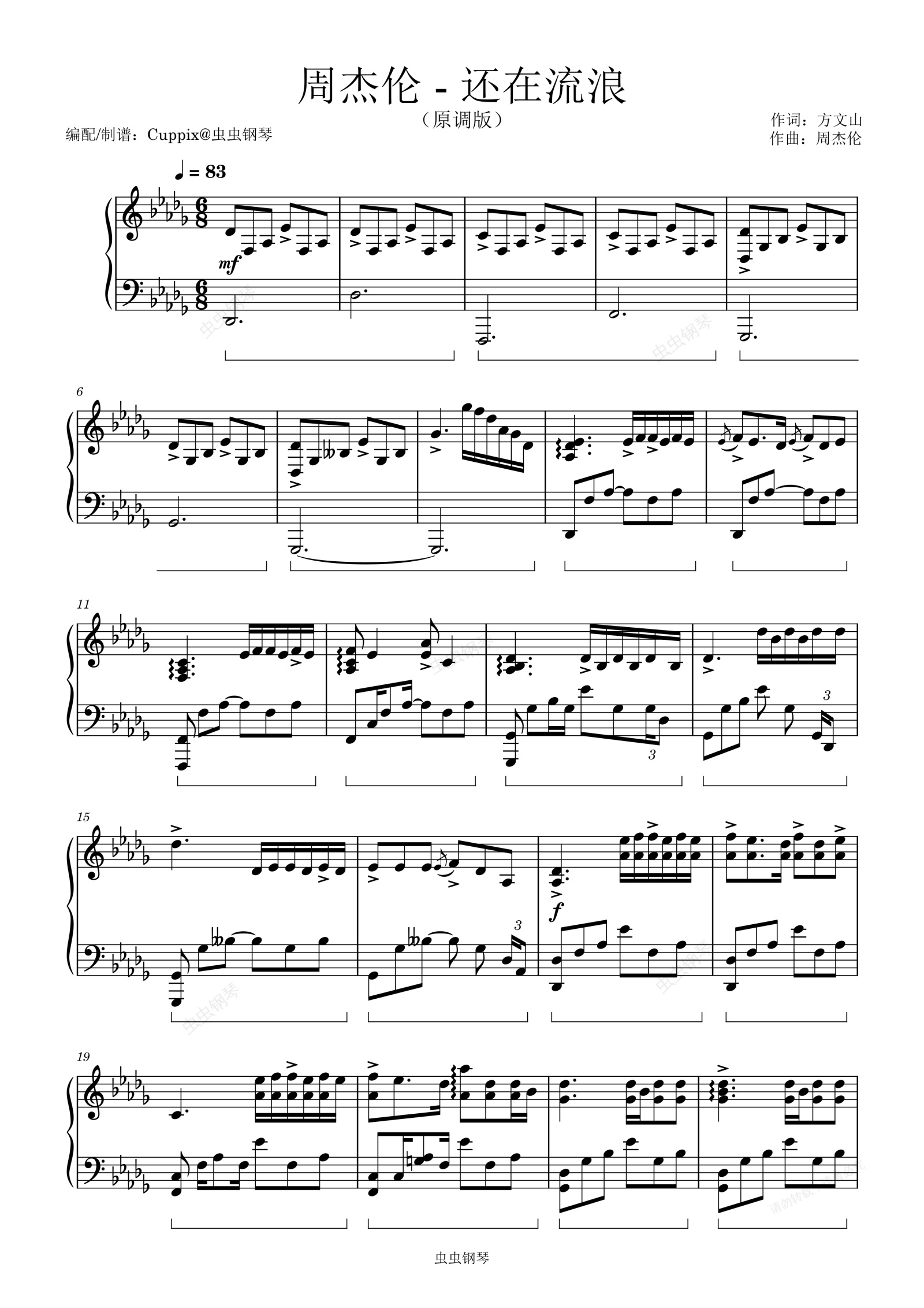 钢琴谱:周杰伦《还在流浪》Cuppix编配-原调-高度还原