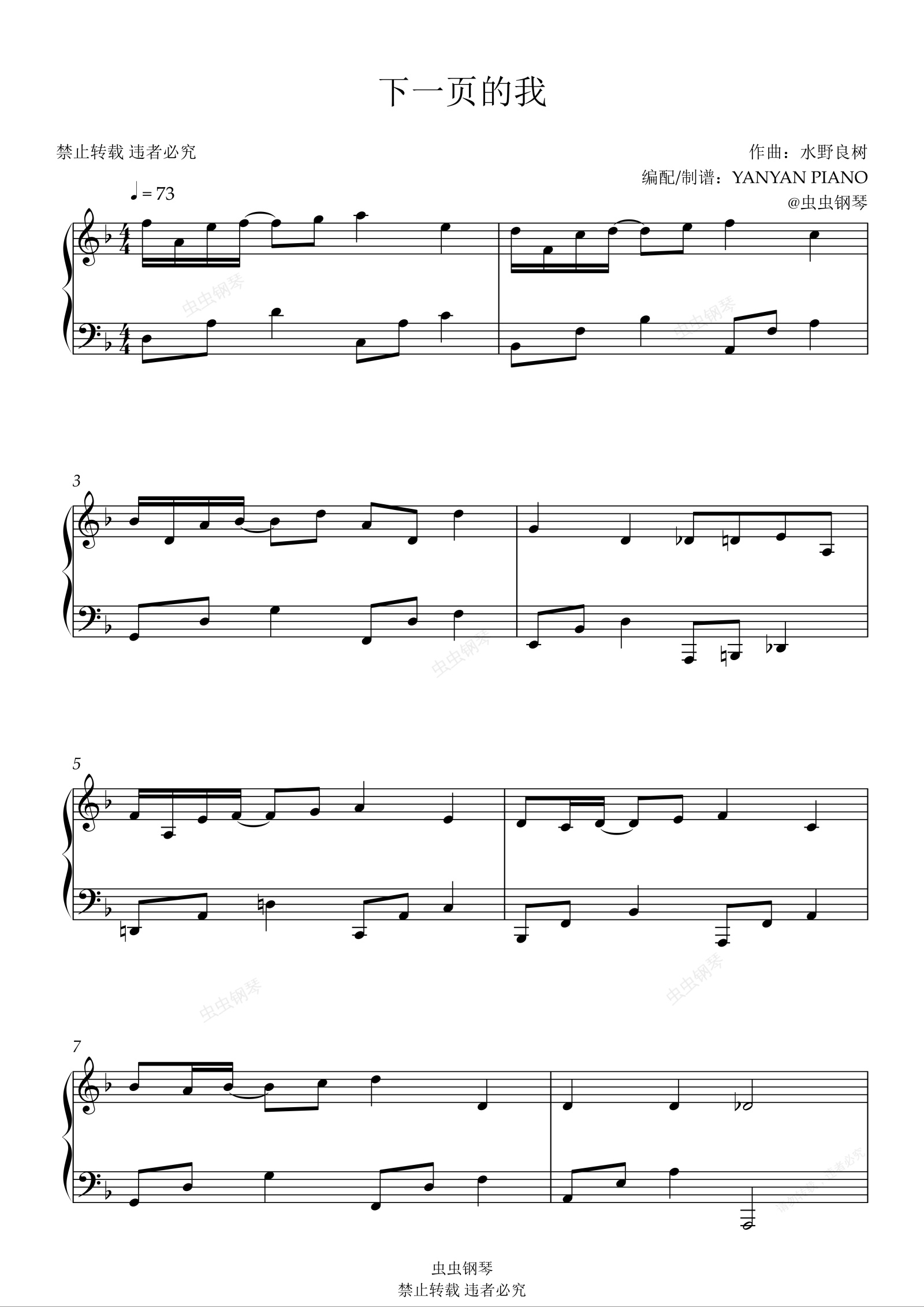 钢琴谱:好听易弹【下一页的我】王心凌(爱上查美乐)