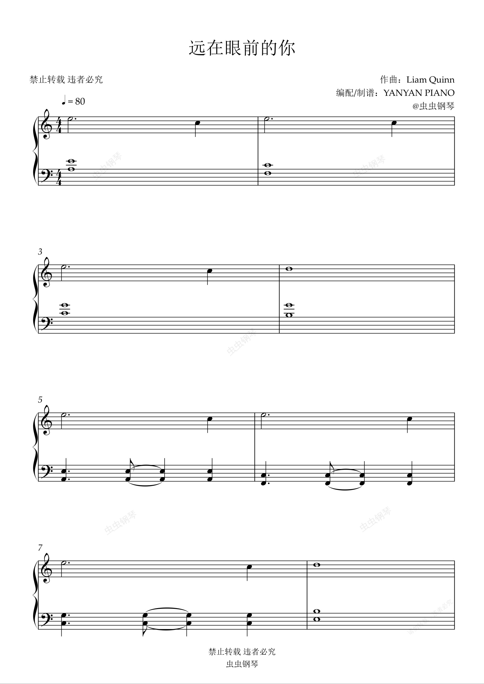 钢琴谱:好听易弹【远在眼前的你】王心凌