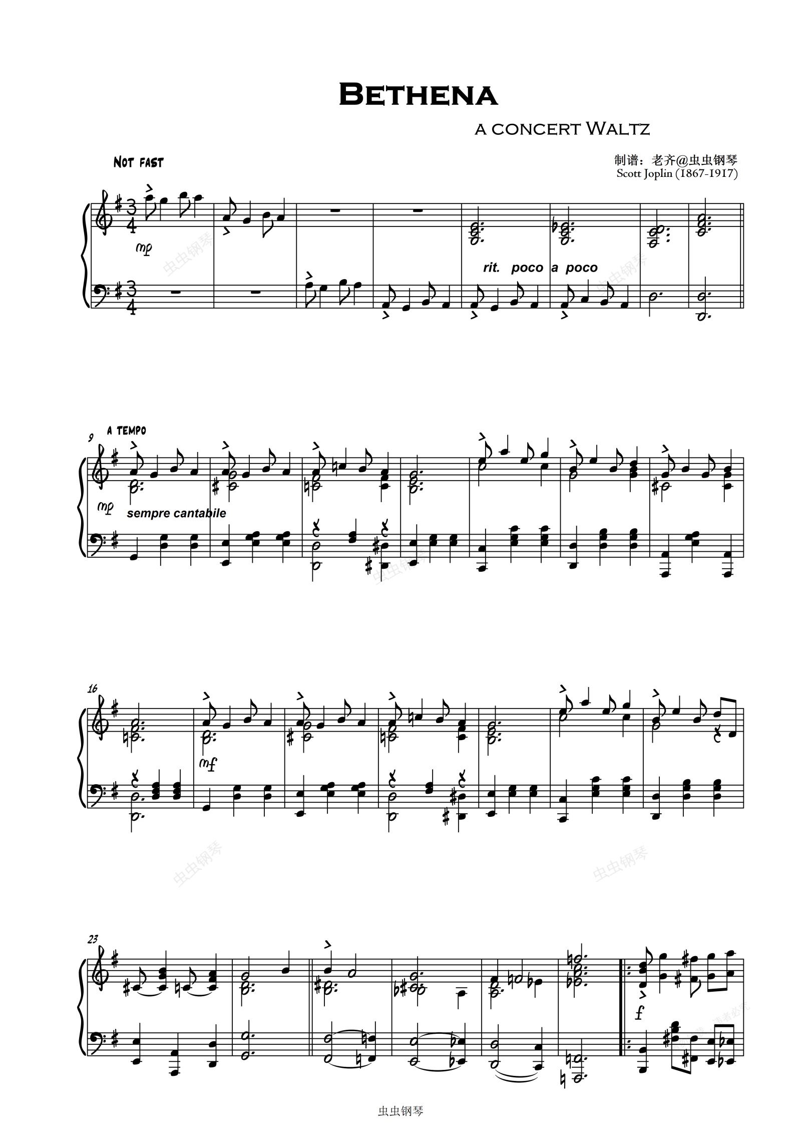 钢琴谱:【爵士】贝特娜圆舞曲-Bethena