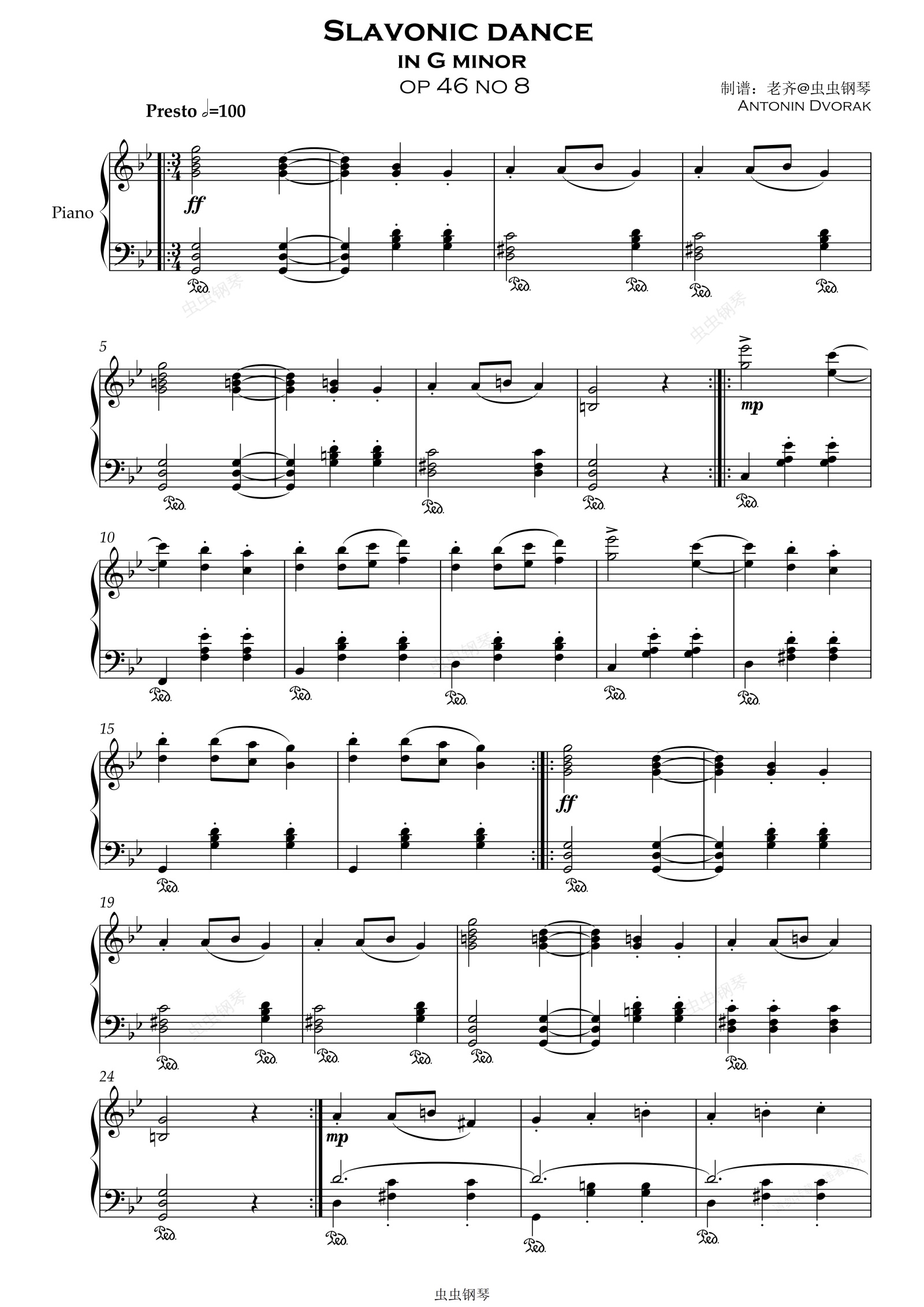 钢琴谱:德沃夏克-斯拉夫舞曲第八首