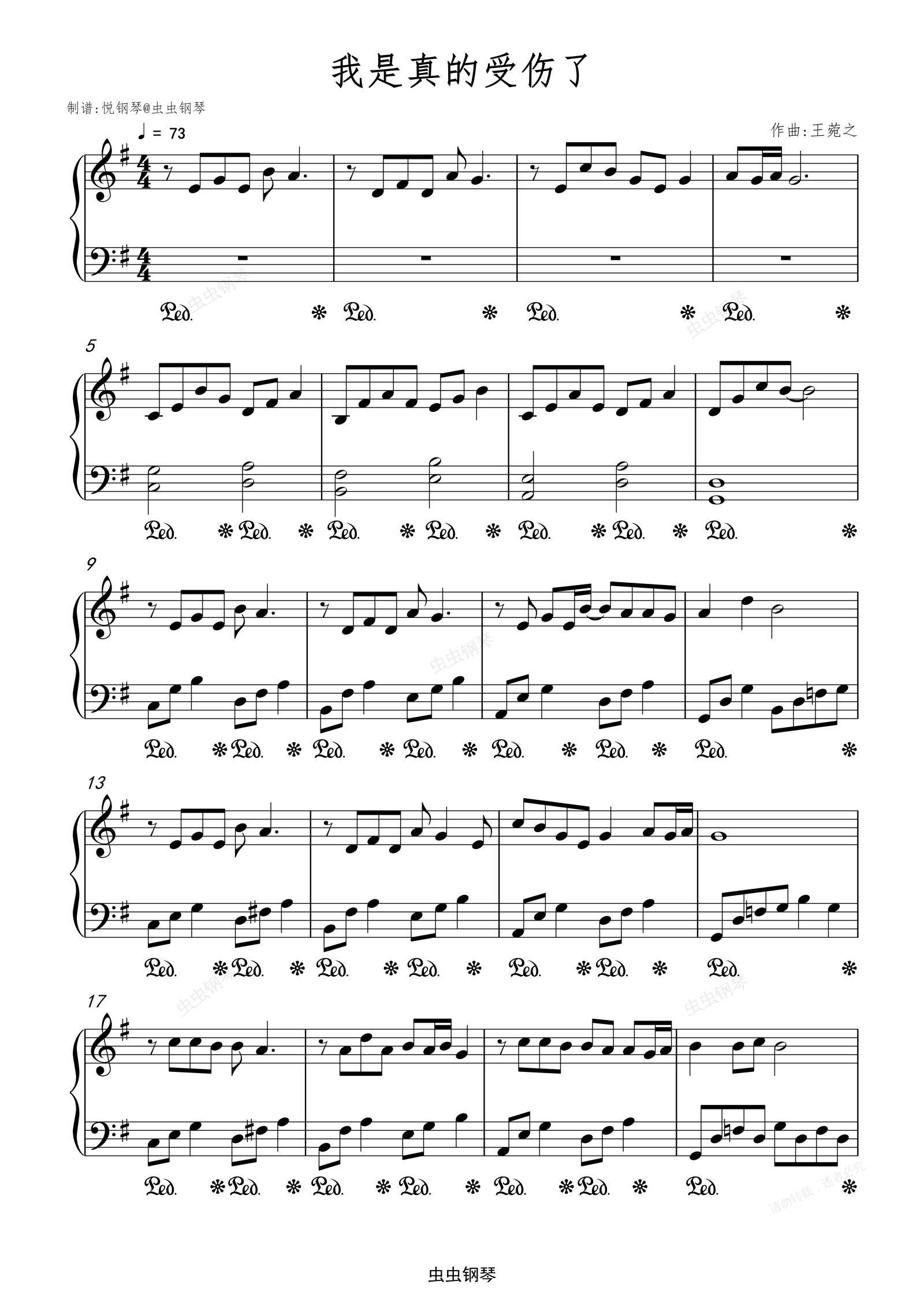 钢琴谱:张学友-我真的受伤了