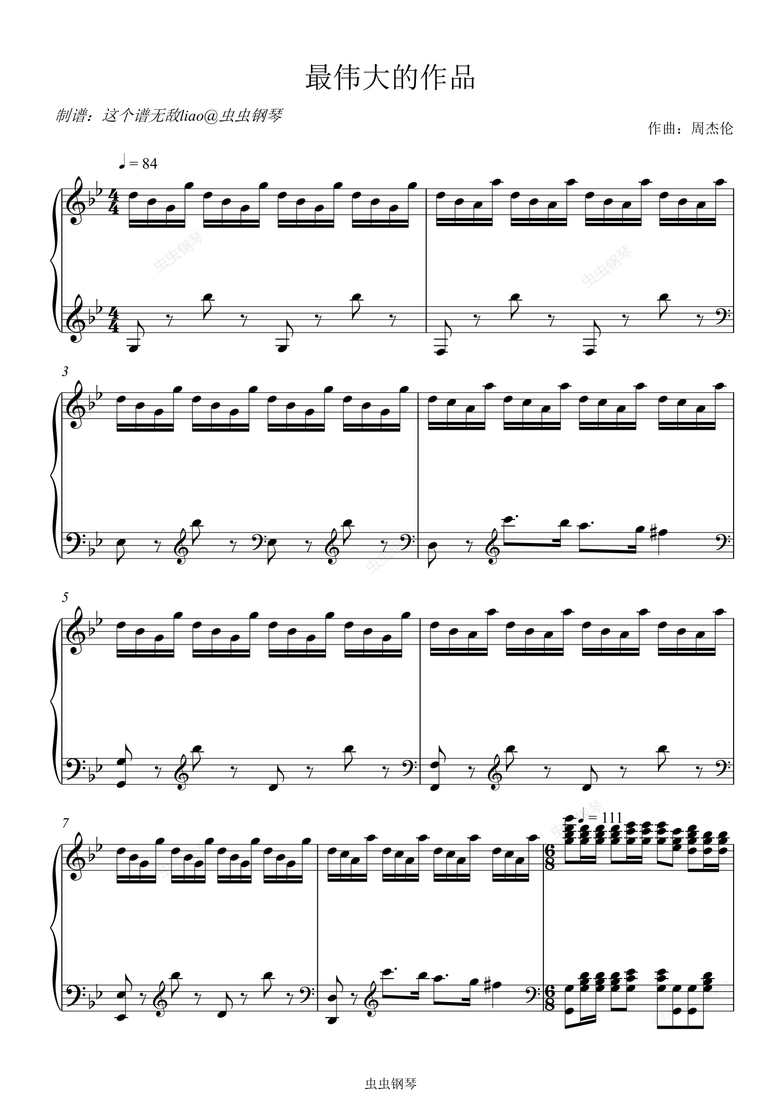 钢琴谱:最伟大的作品 -周杰伦(前奏与斗琴片段)