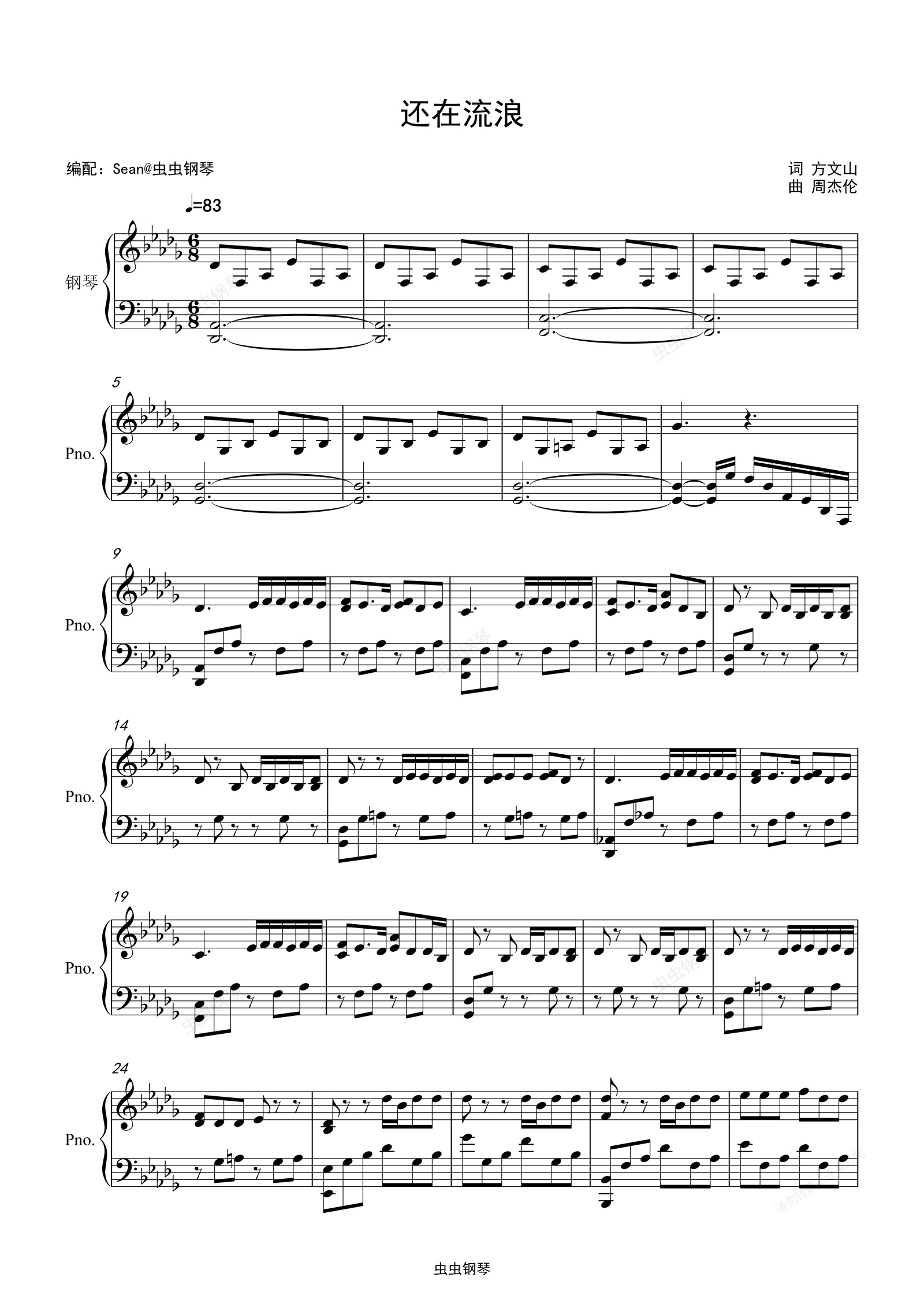 钢琴谱:周杰伦《还在流浪》高度还原版-Sean编配