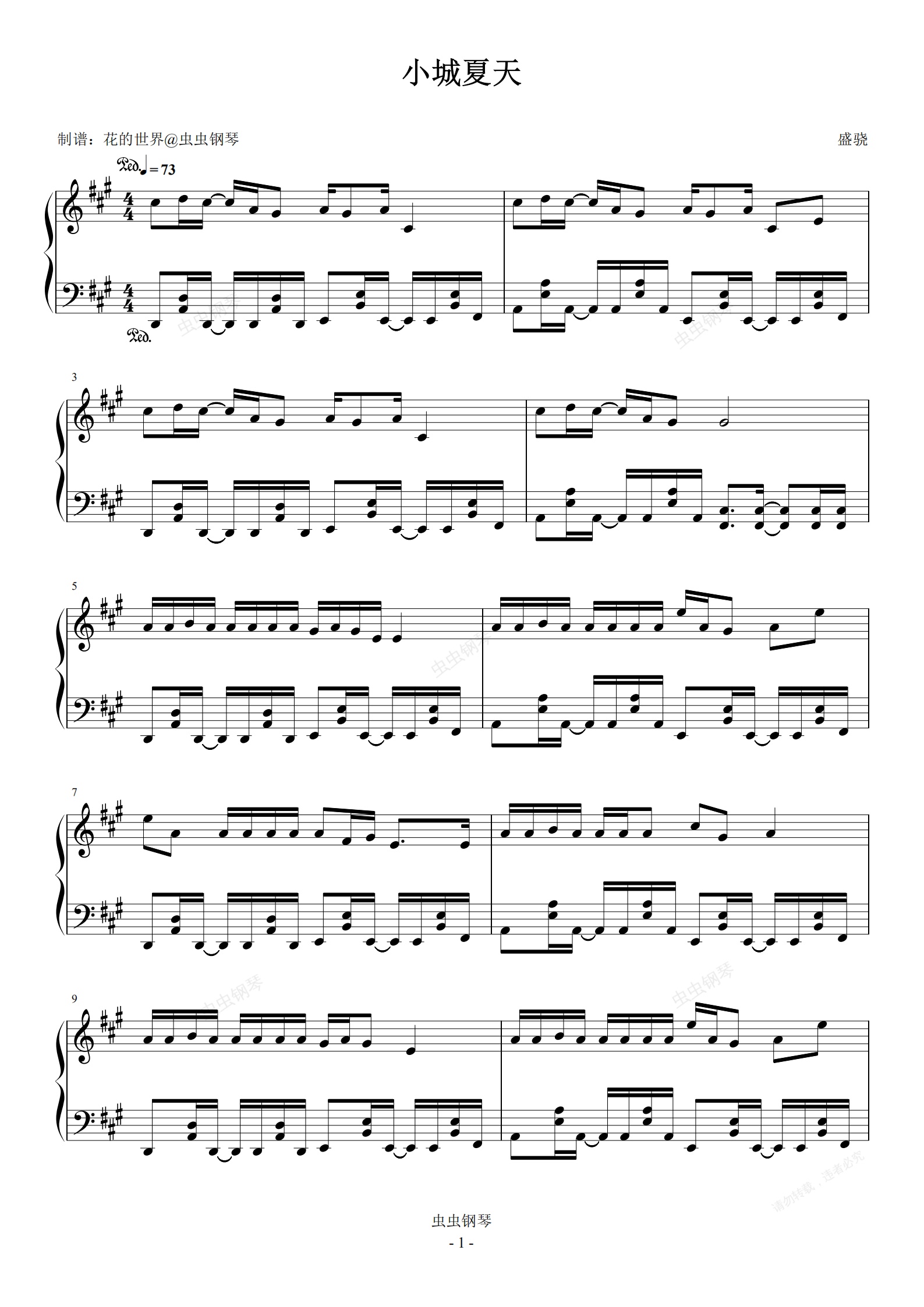 钢琴谱:小城夏天 原调节奏版 LBI利比