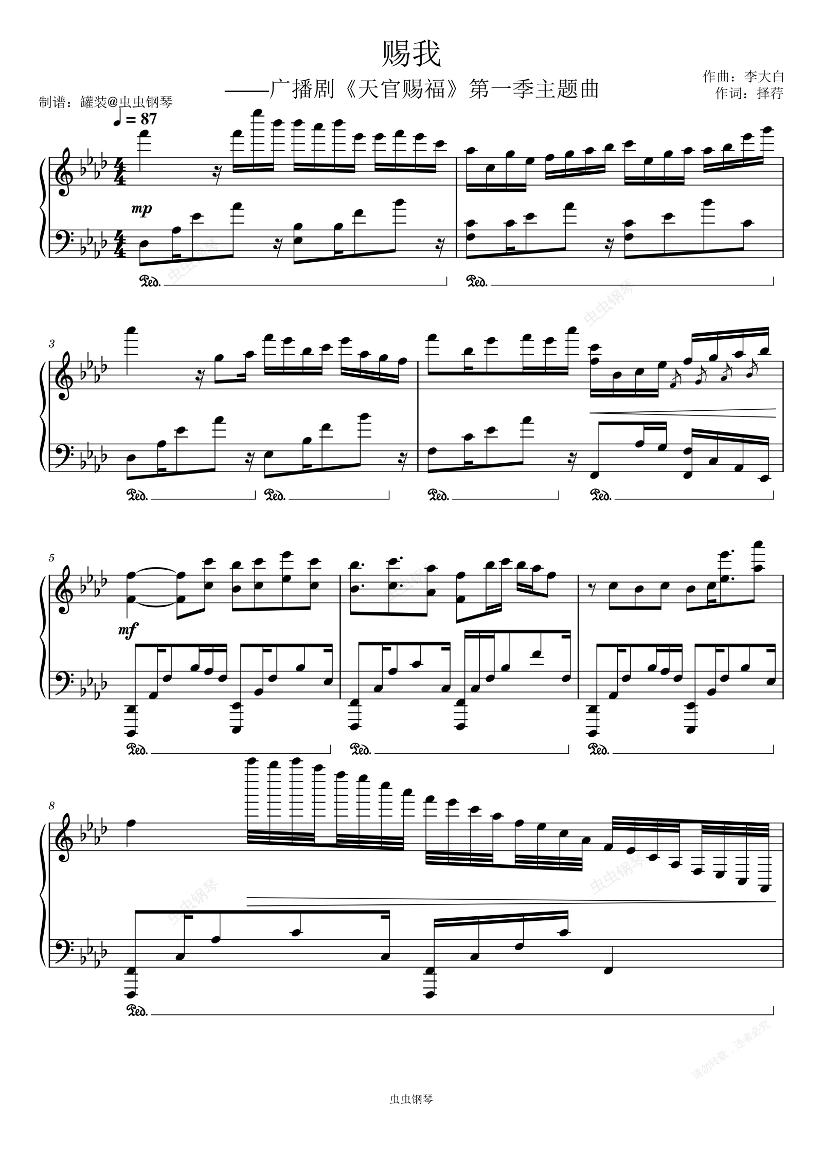 钢琴谱:赐我(广播剧《天官赐福》第一季ed)