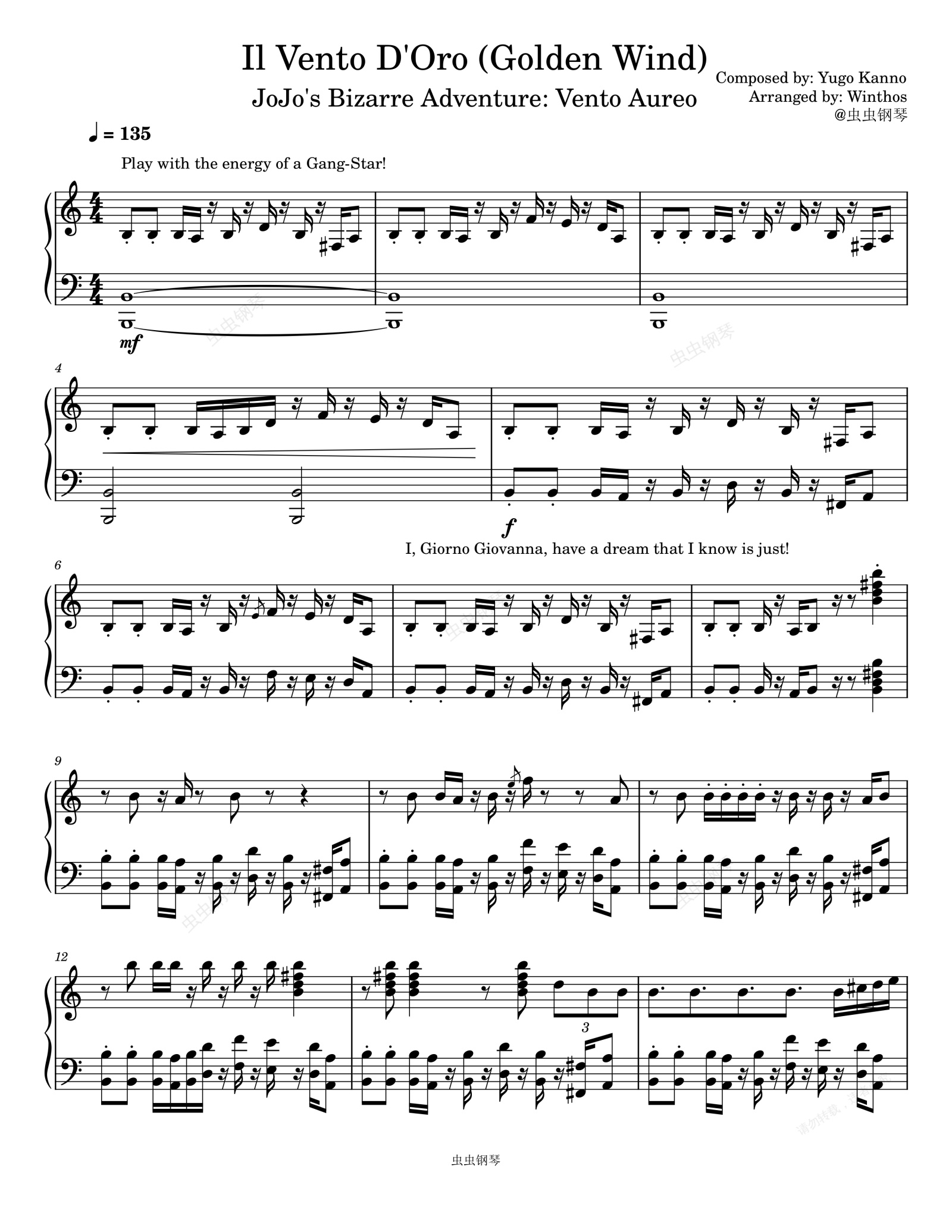 钢琴谱:ジョジョの奇妙な冒険 黄金の風 O.S.T vol.1 Overture (JOJO的奇妙冒险:黄金之风 )
