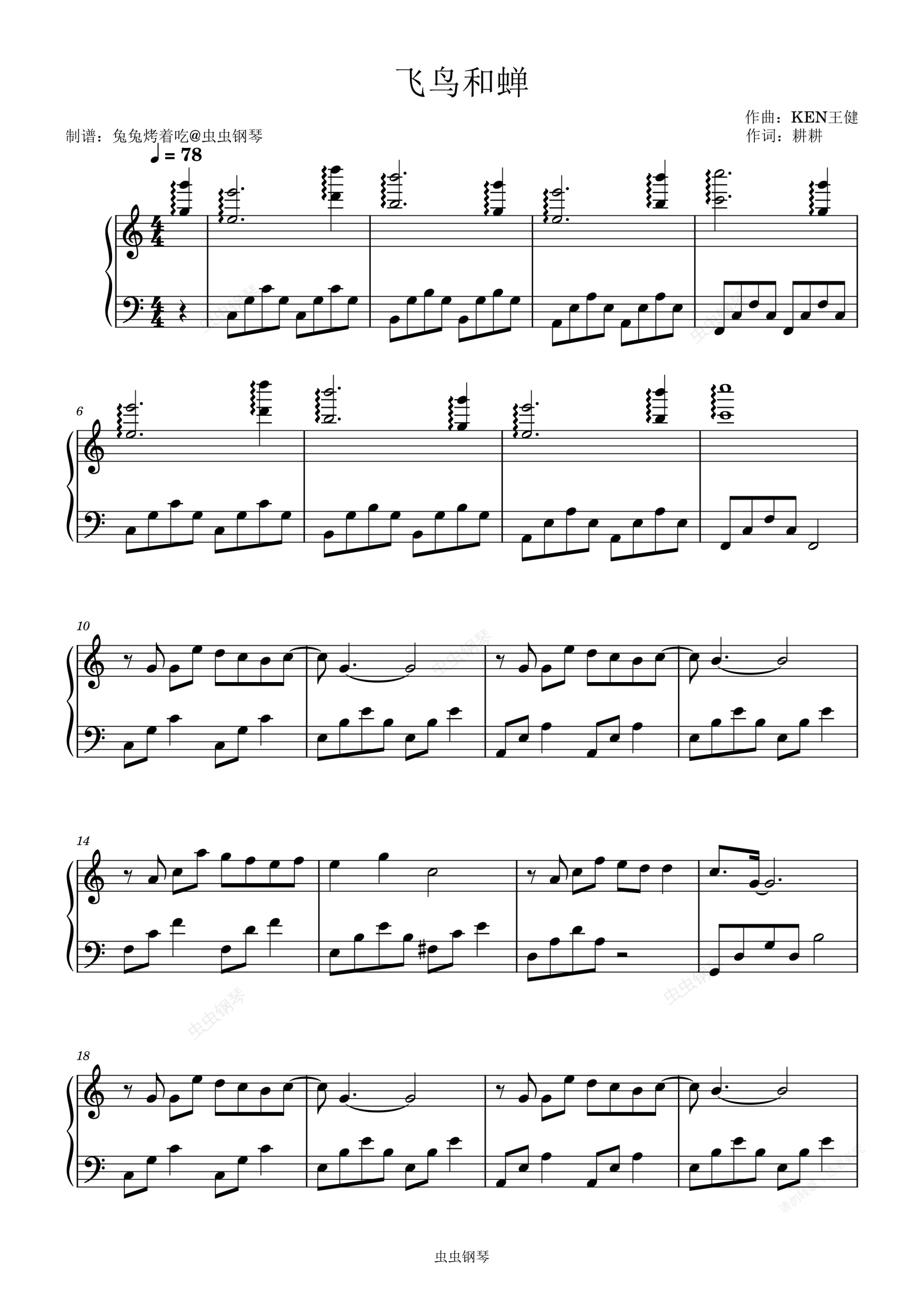 钢琴谱:《飞鸟和蝉》简易伴奏C调