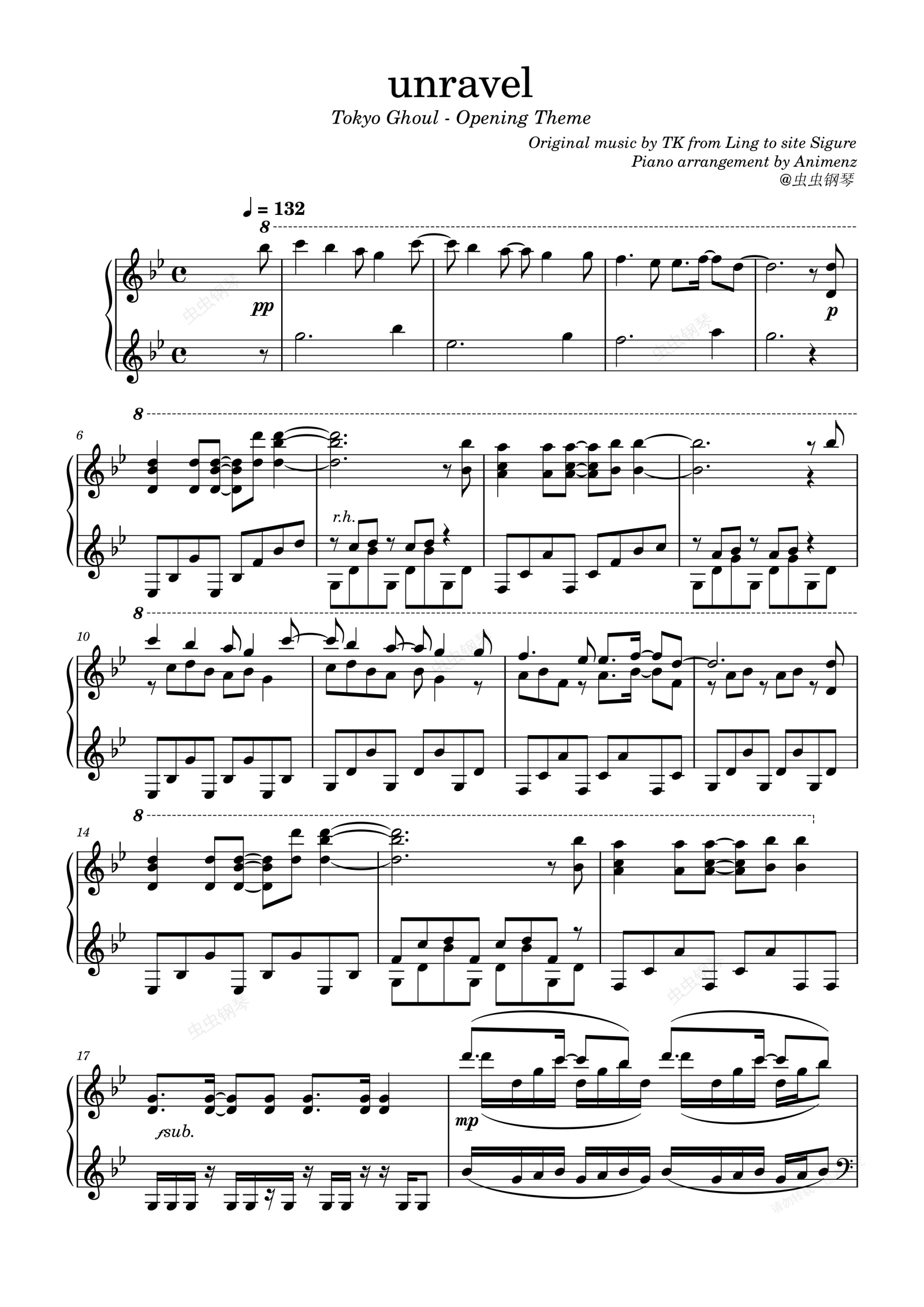 钢琴谱:【Animenz】Unravel 东京喰种OP 原版