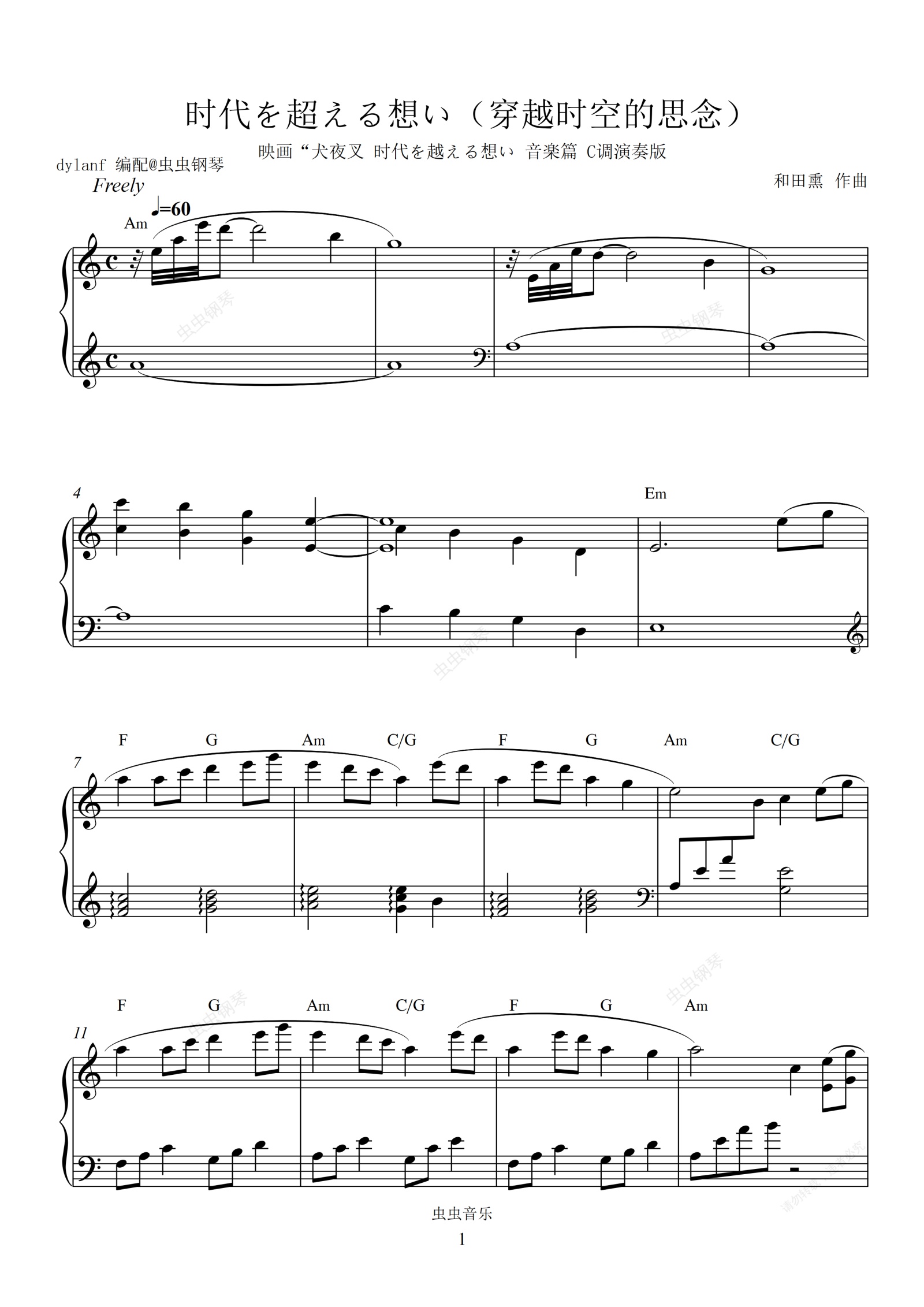 钢琴谱:穿越时空的思念 高还原C调演奏版《犬夜叉 超越时代的思念》