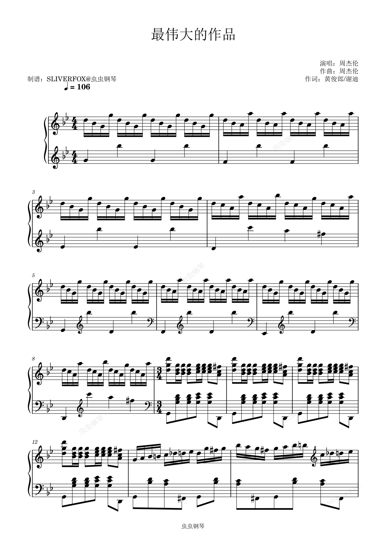 钢琴谱:《最伟大的作品》极致高能爆燃版 原调高难