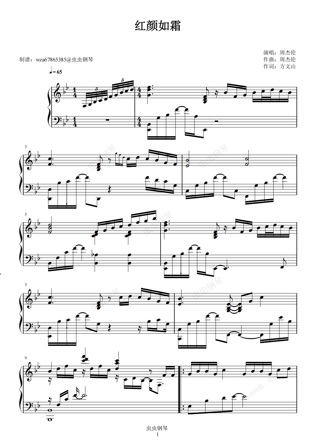 钢琴谱:红颜如霜