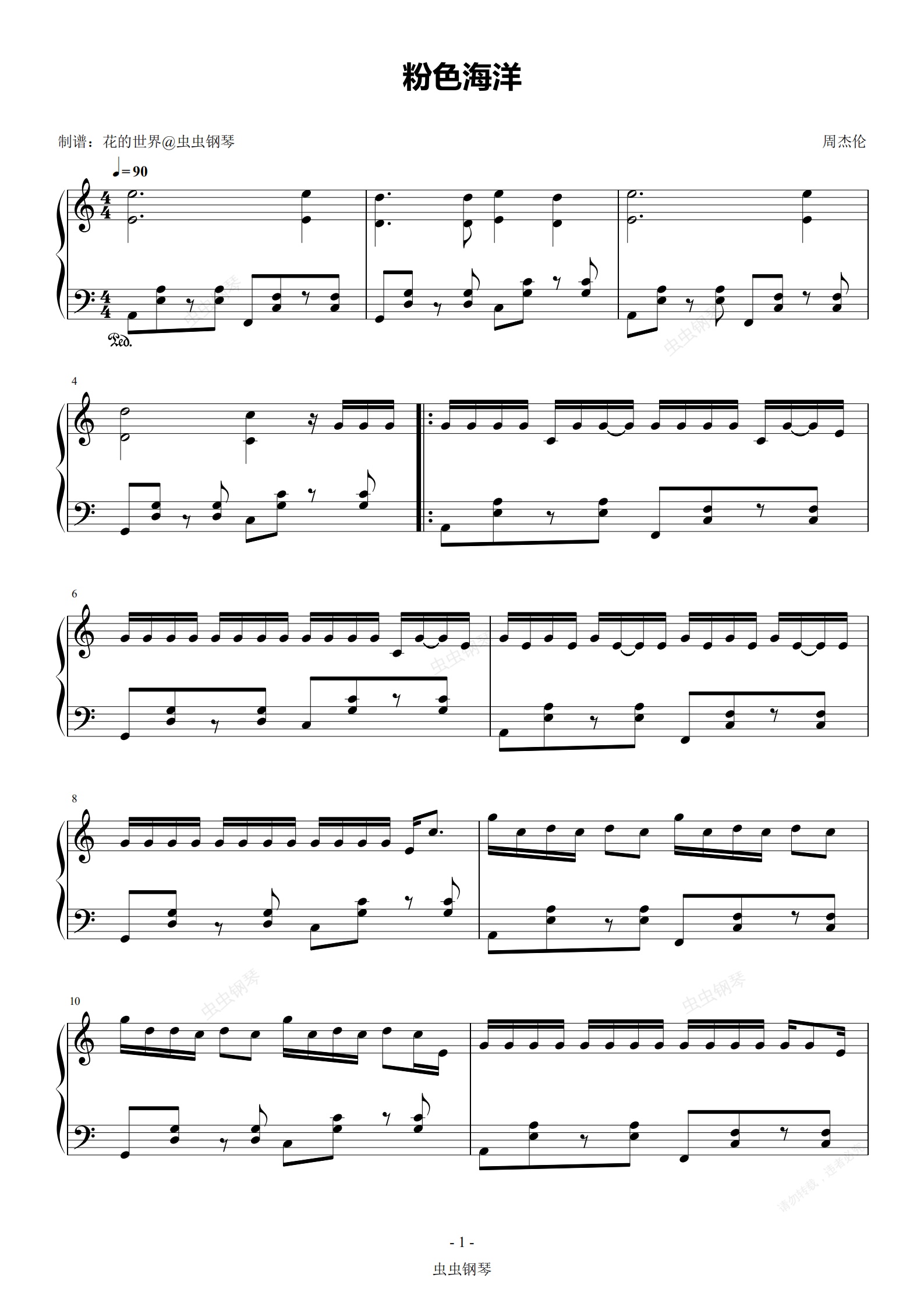 钢琴谱:粉色海洋 C调简易版 周杰伦