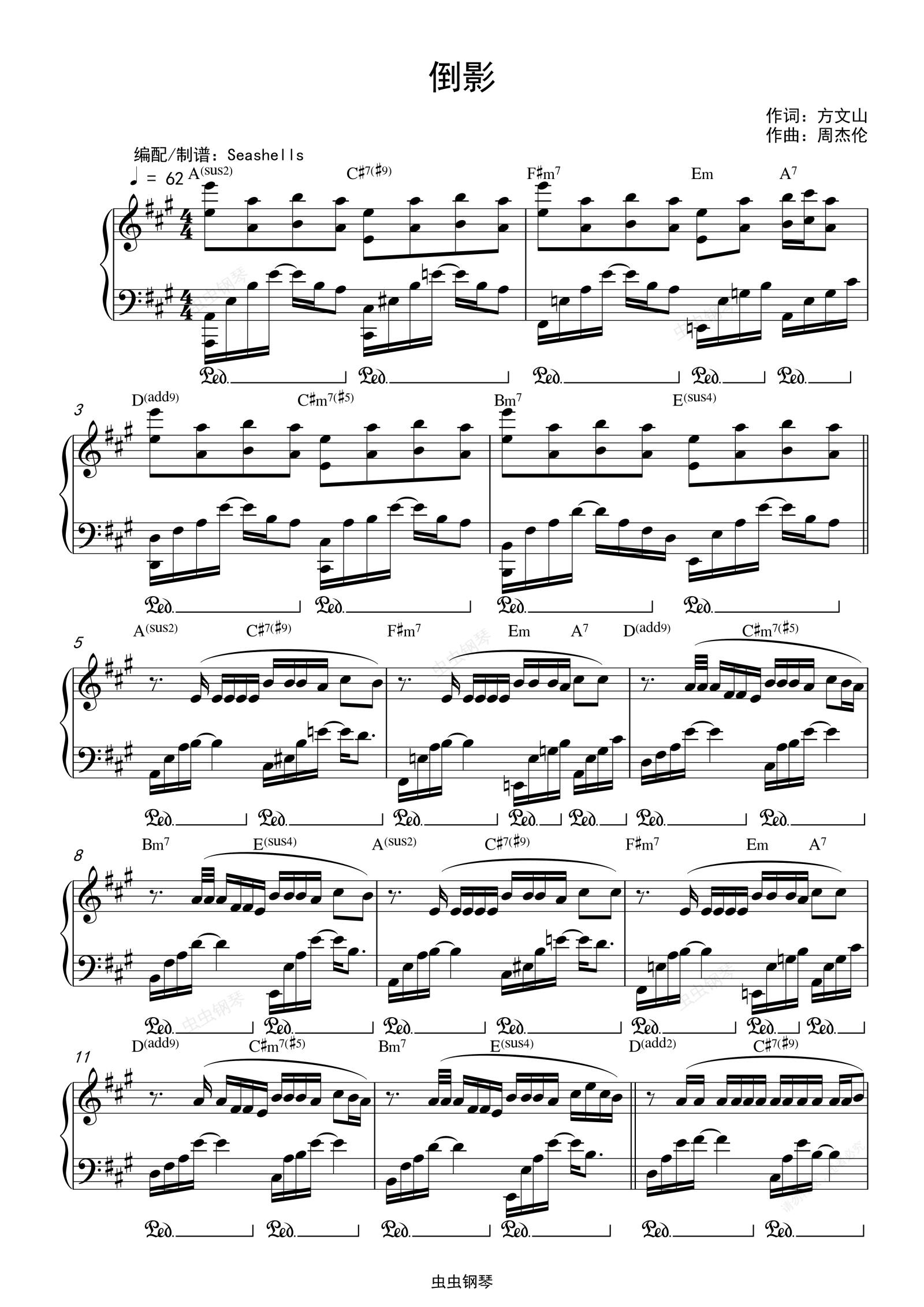 钢琴谱:周杰伦-《倒影》精编钢琴独奏