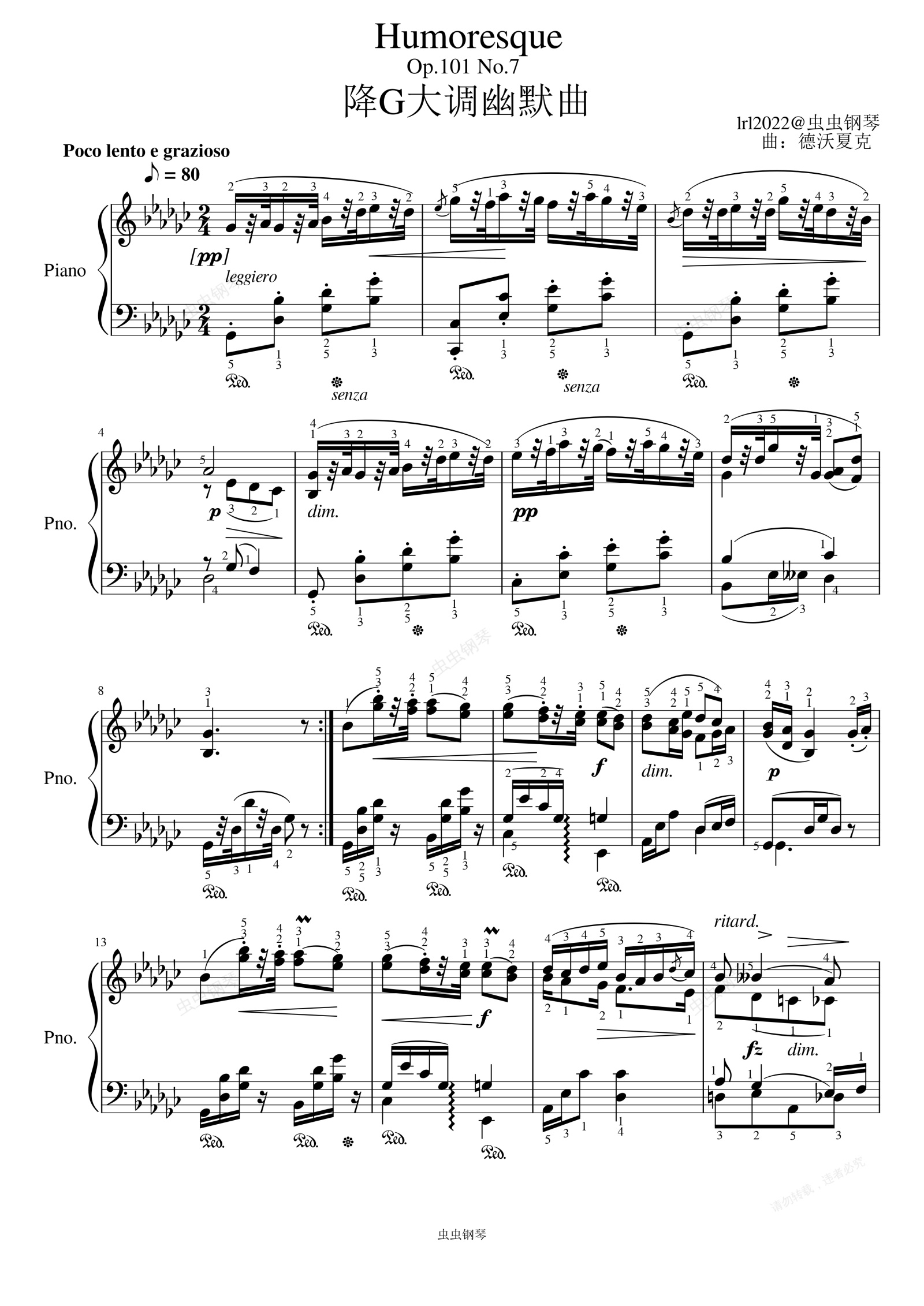 钢琴谱:降G大调-幽默曲Op.101 No.7-原版附指法-德沃夏克-中音协考级-8级--Humoresque