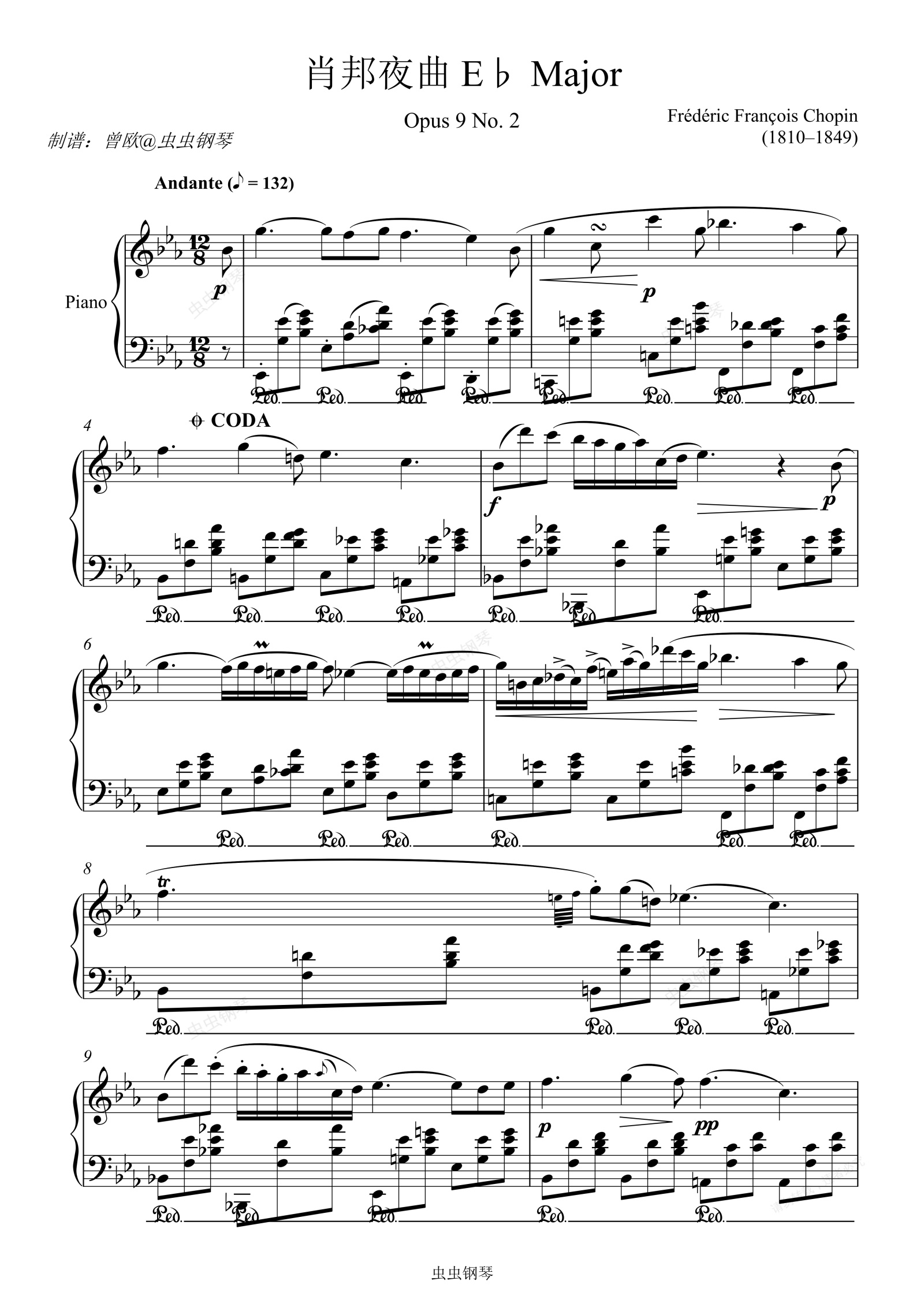 钢琴谱:肖邦夜曲Op.9,No.2 免费谱