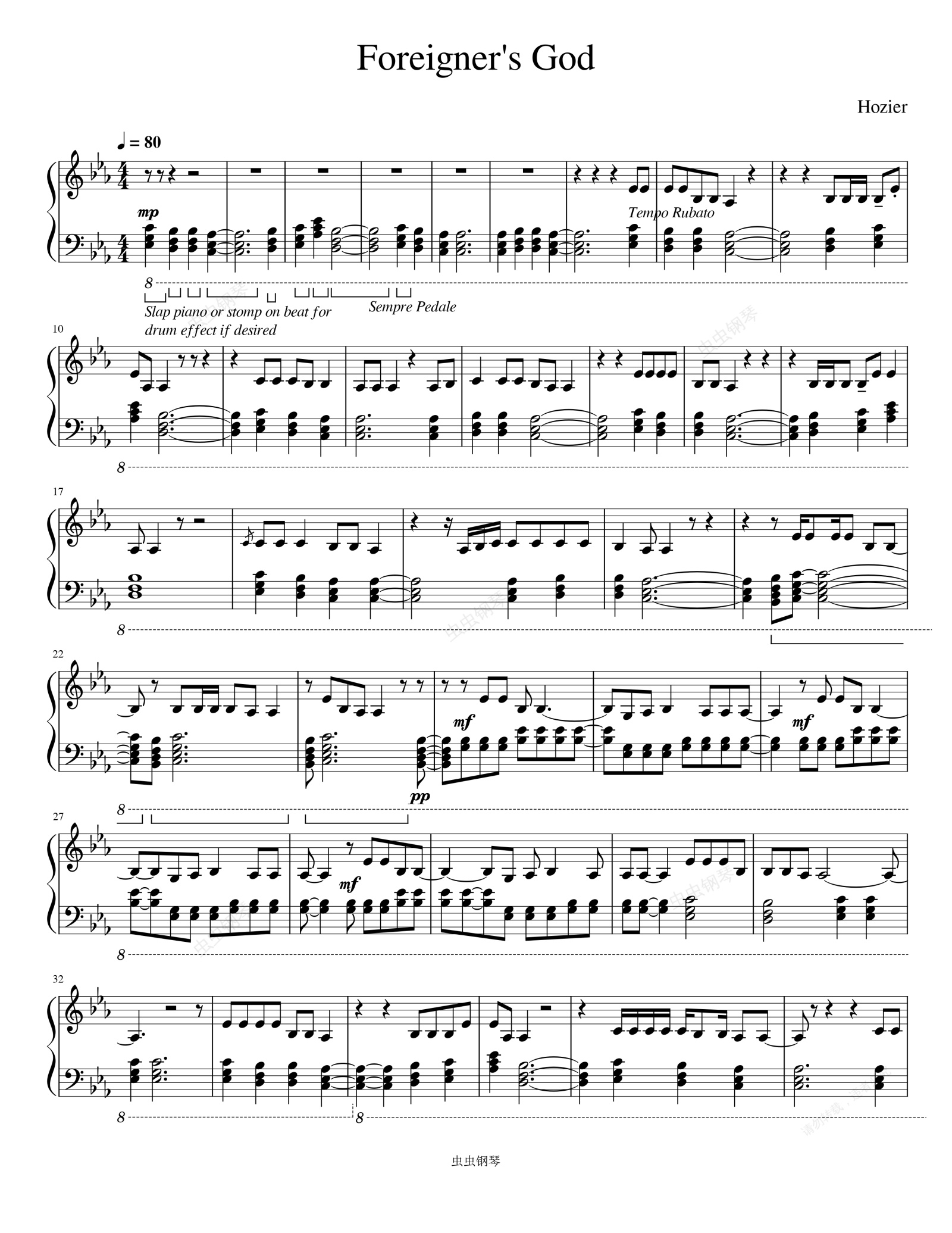 钢琴谱:Foreigner's God-Hozier