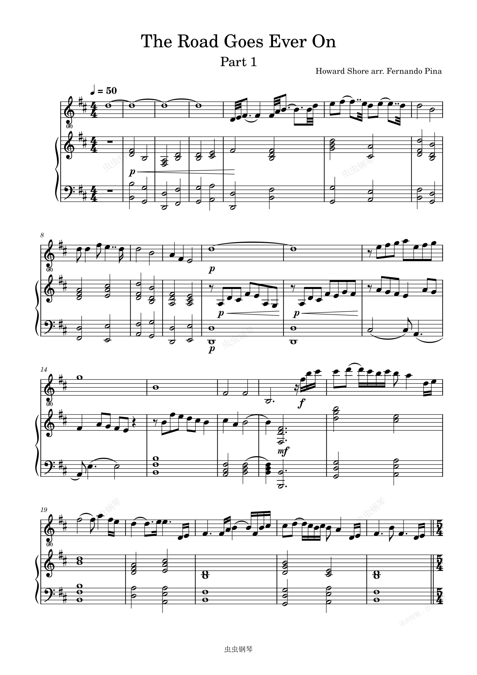 钢琴谱:指环王 电影-The Road Goes Ever On