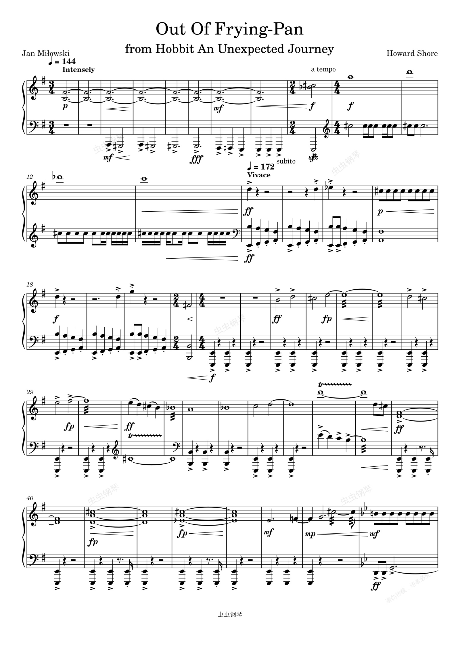 钢琴谱:霍比特人 电影-Out Of Frying-Pan Howard Shore