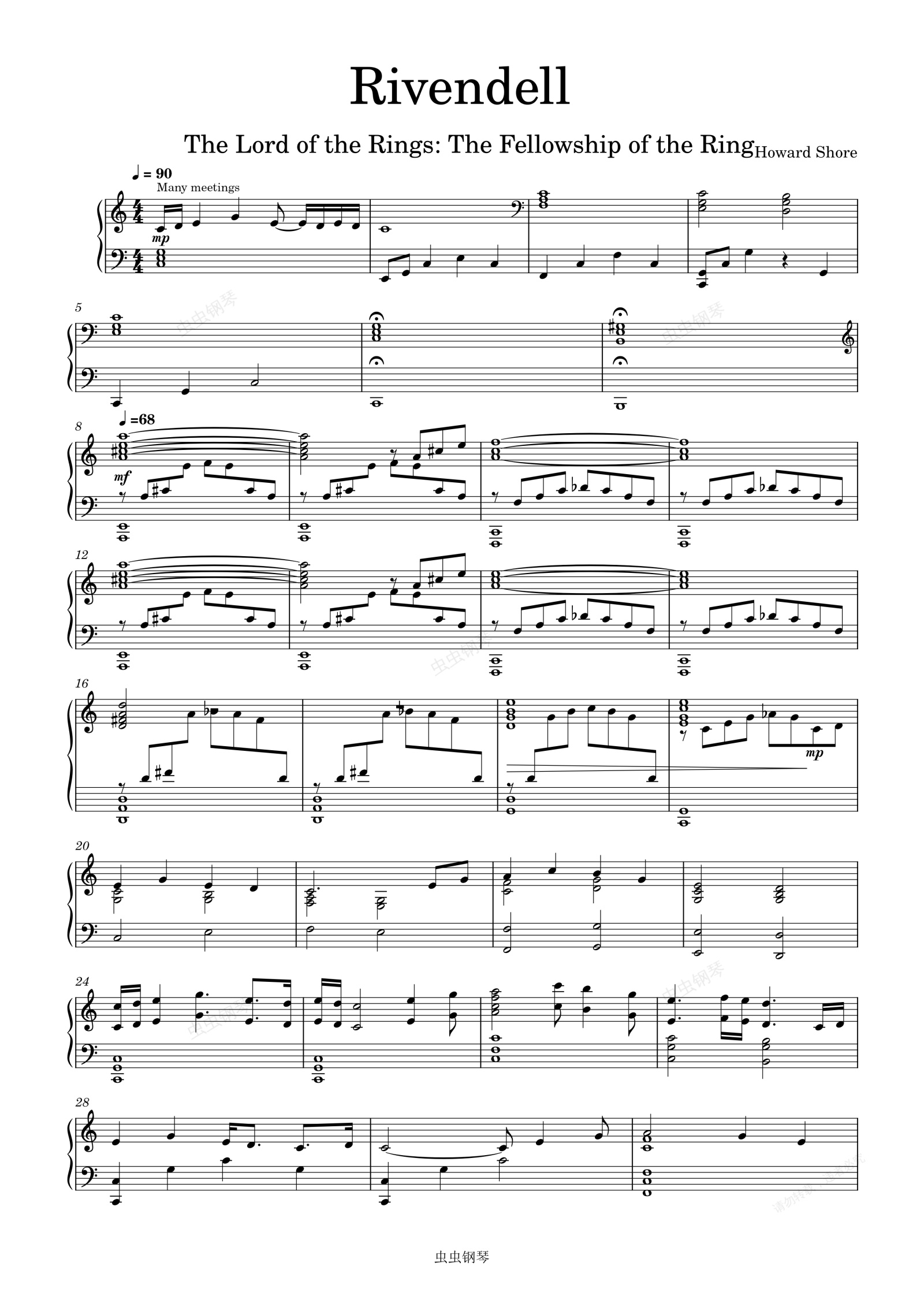 钢琴谱:霍比特人 电影 Rivendell-Howard Shore