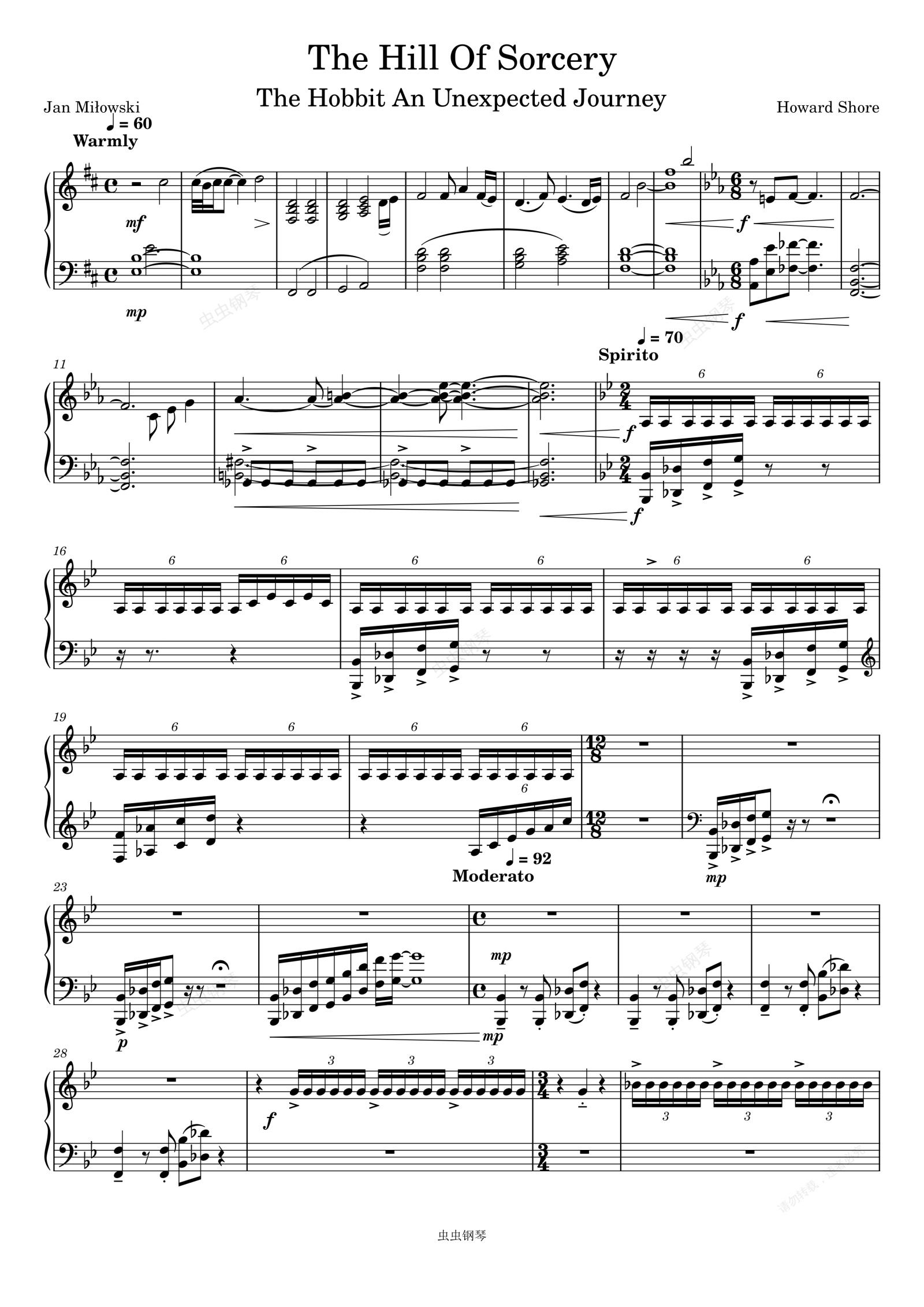 钢琴谱:霍比特人 电影-The Hill Of Sorcery-Howard Shore