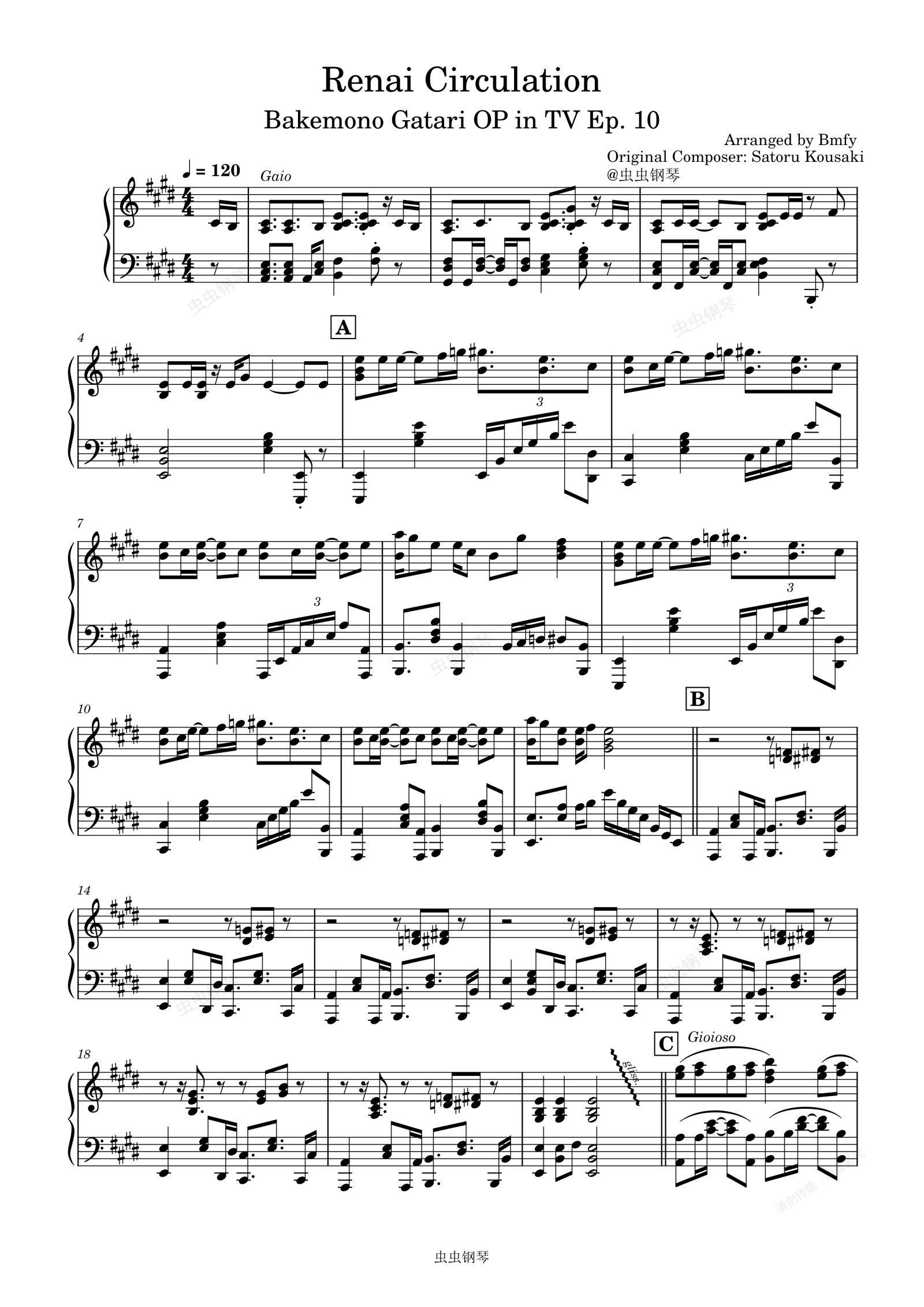 钢琴谱:恋爱循环/恋愛サーキュレーション/Renai Circulation