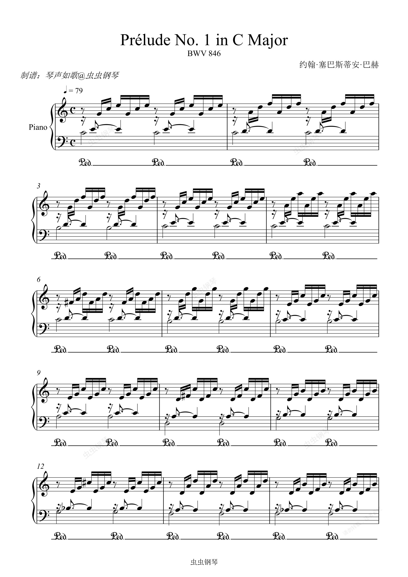 钢琴谱:C大调第一号BWV 846前奏曲 - 【巴赫】