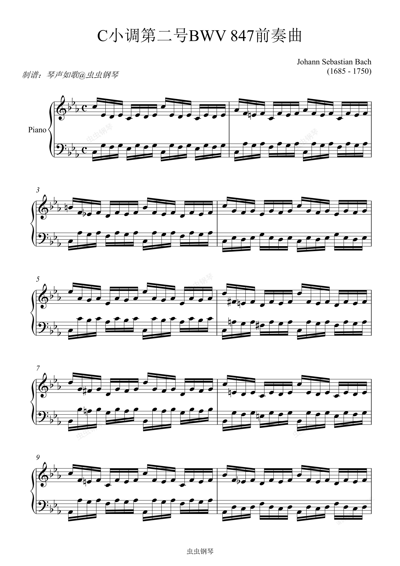 钢琴谱:C小调第二号BWV 847前奏曲 - 巴赫