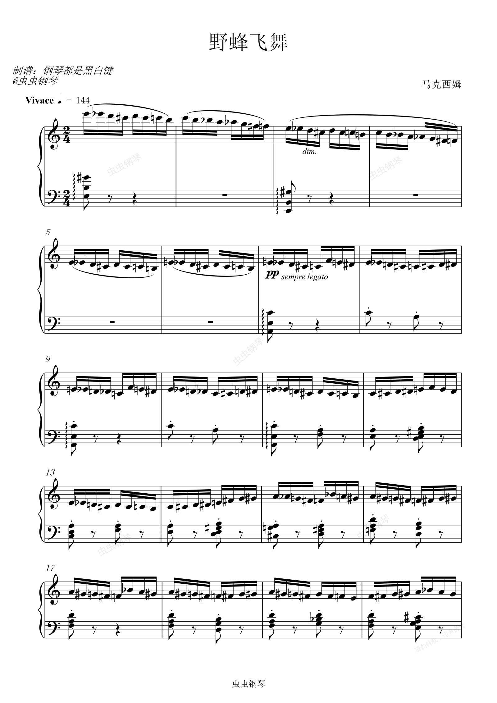 钢琴谱:《野蜂飞舞》 号称十大难曲之一