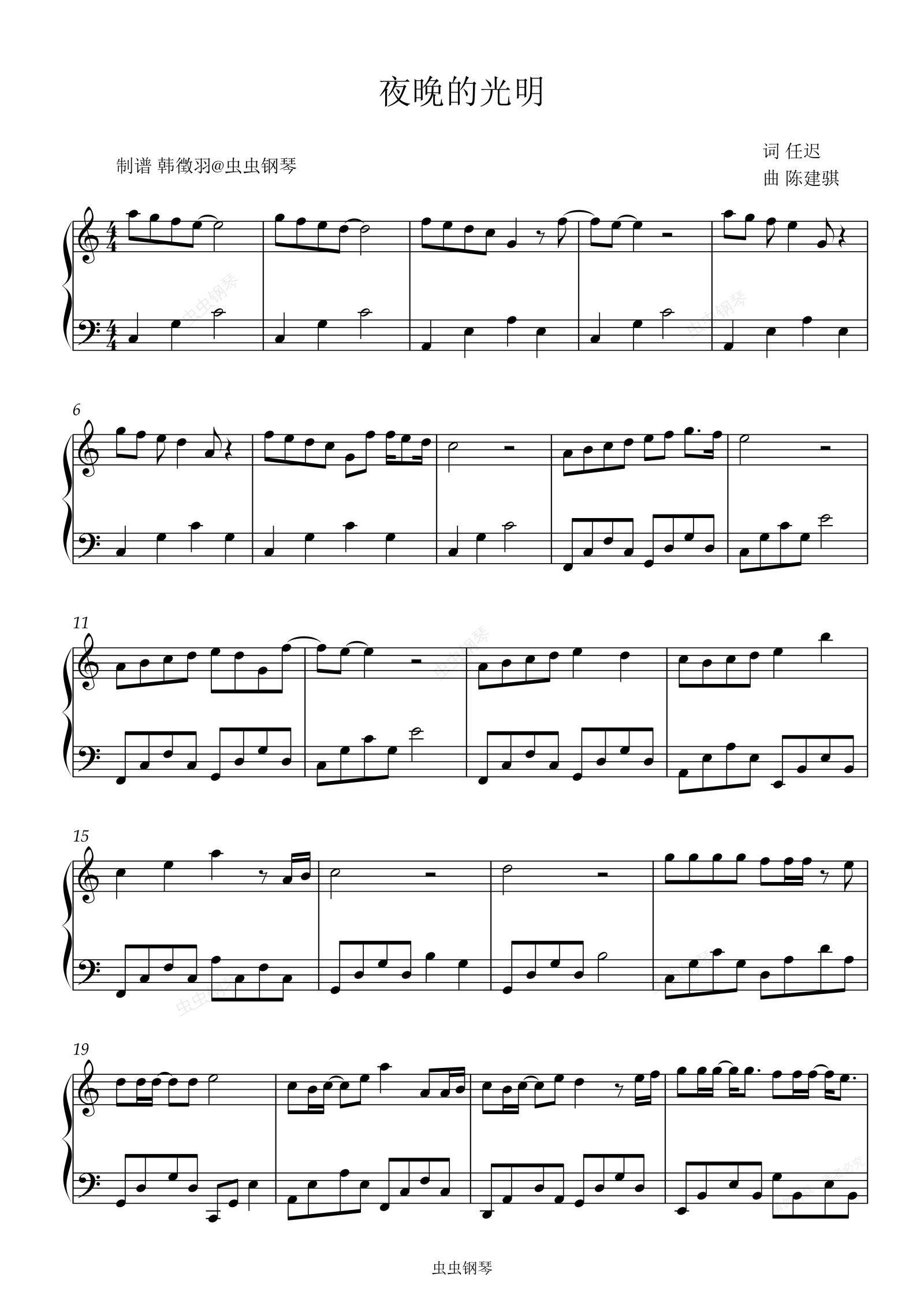 钢琴谱:夜晚的光明 刘若英 C调简易版