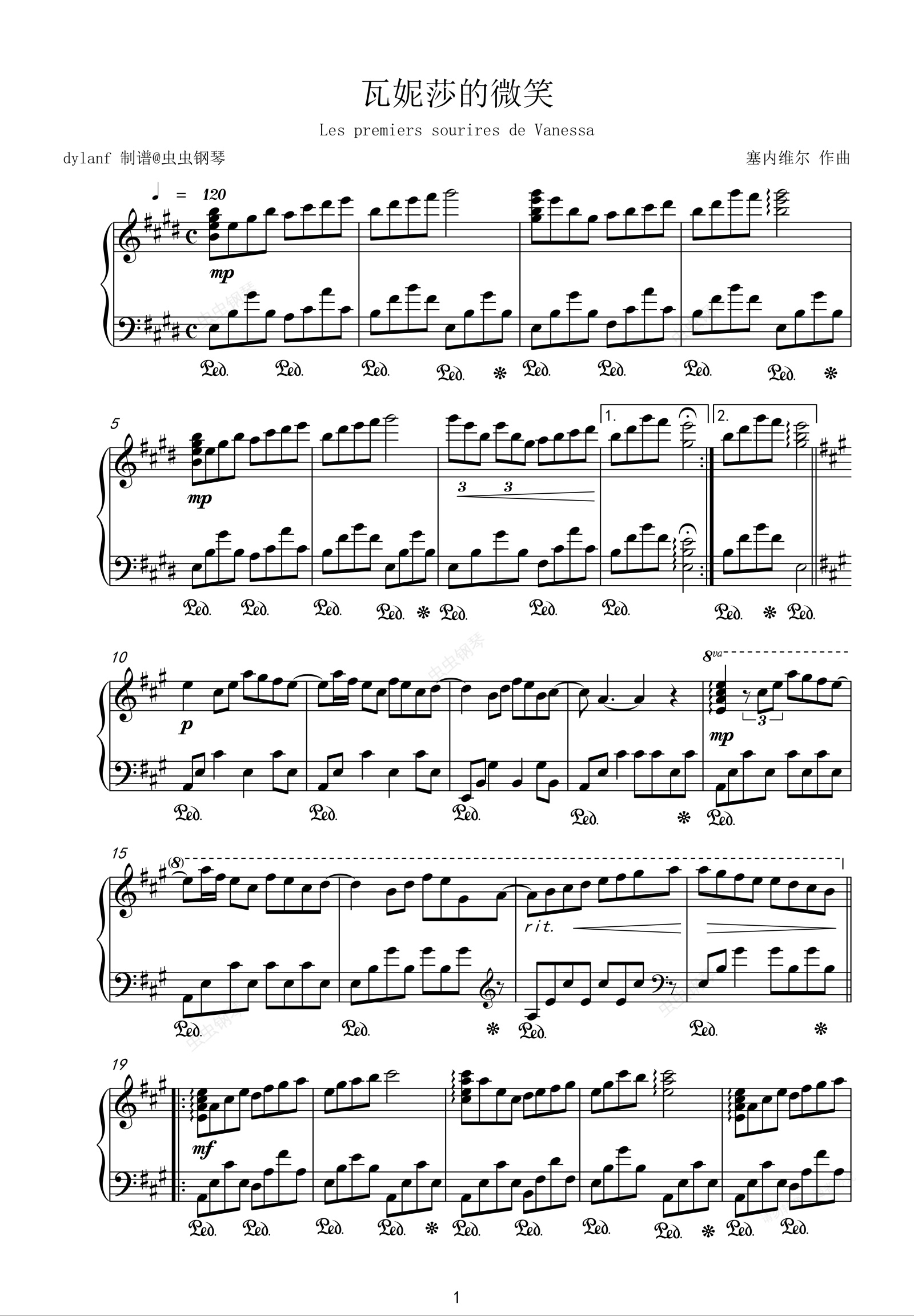 钢琴谱:瓦妮莎的微笑 演奏版 Richard Clayderman理查德克莱德曼Vanessa