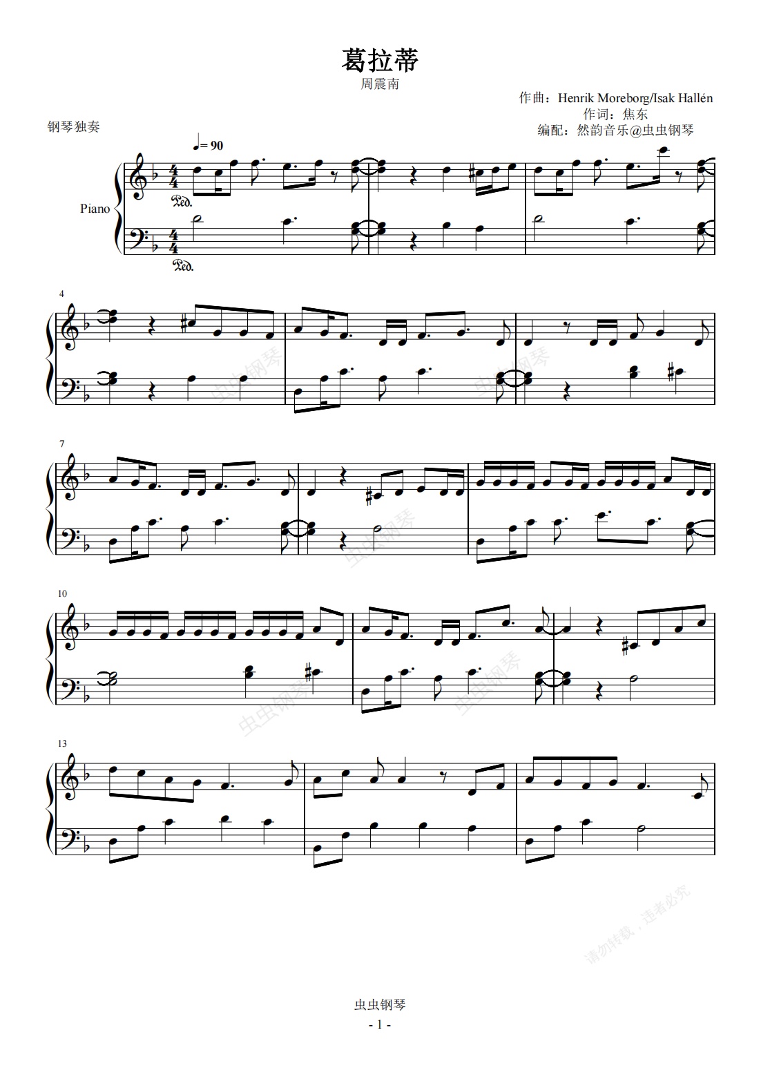钢琴谱:葛拉蒂-周震南 钢琴独奏