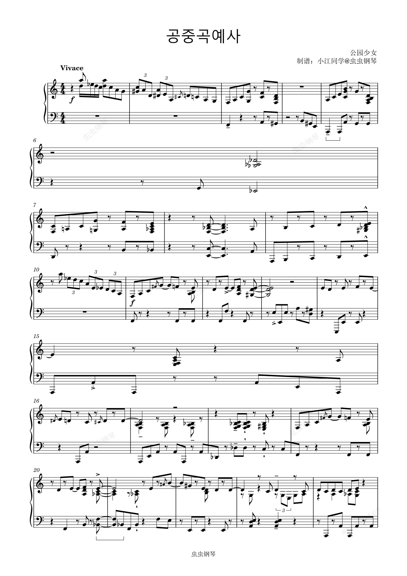 钢琴谱:공중곡예사 公园少女