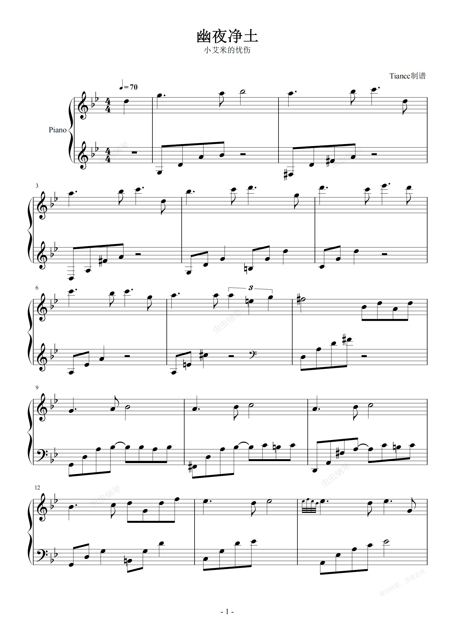 钢琴谱:《幽夜净土》原神小艾米城堡BGM