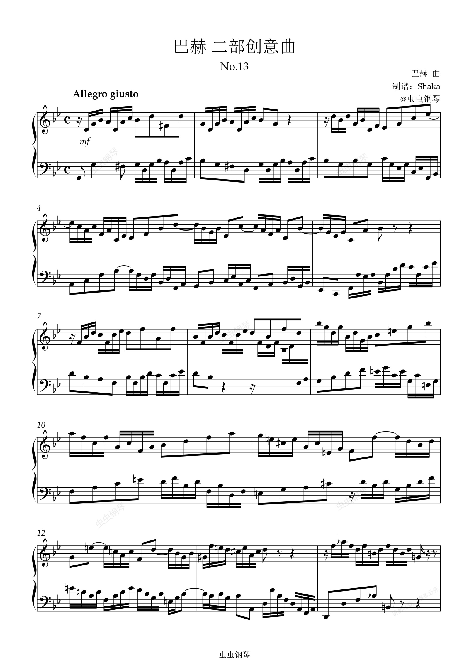 钢琴谱:巴赫 二部创意曲No.13 g小调版 上海音乐学院6级考级曲目