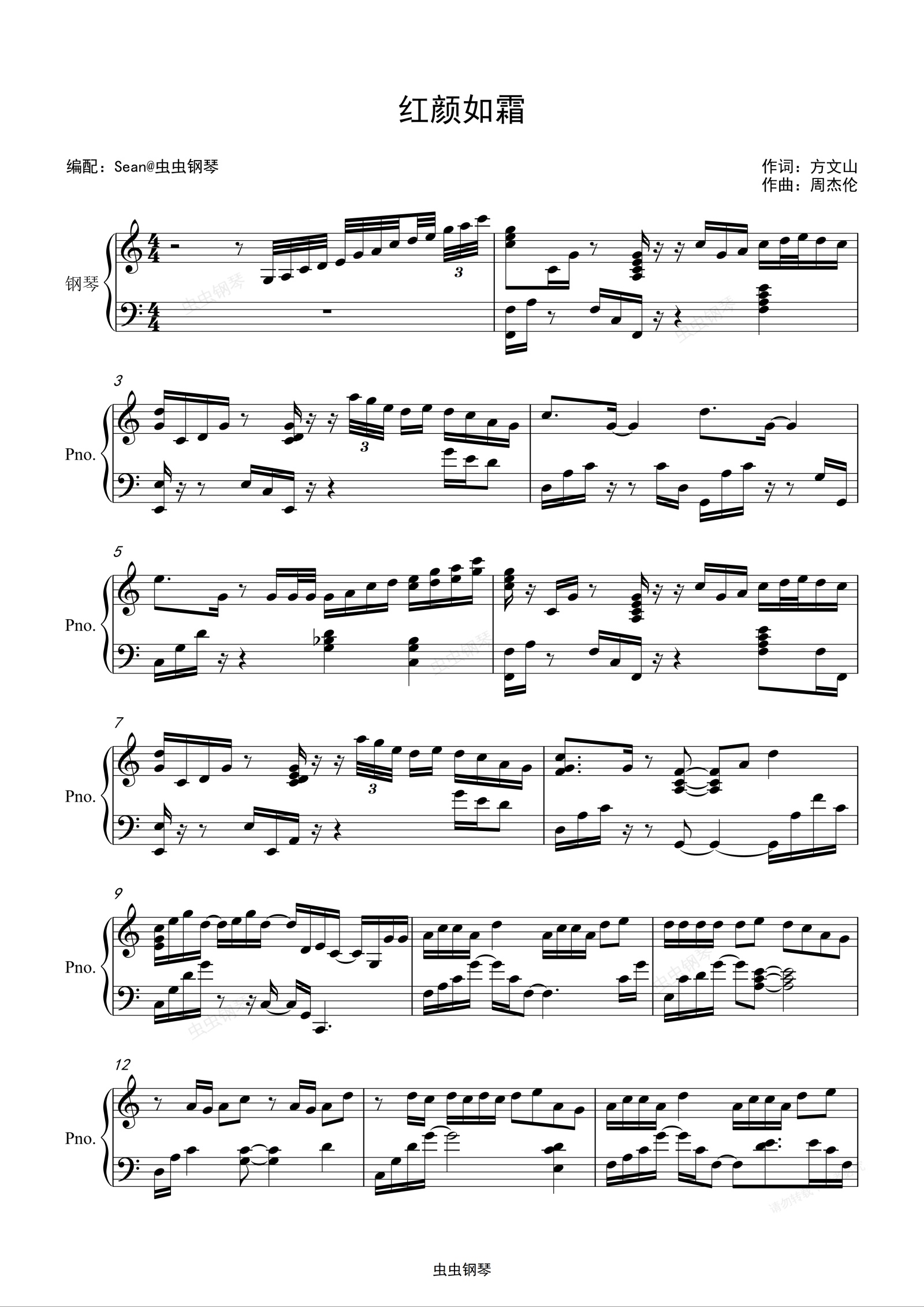 钢琴谱:周杰伦《红颜如霜》C大调版