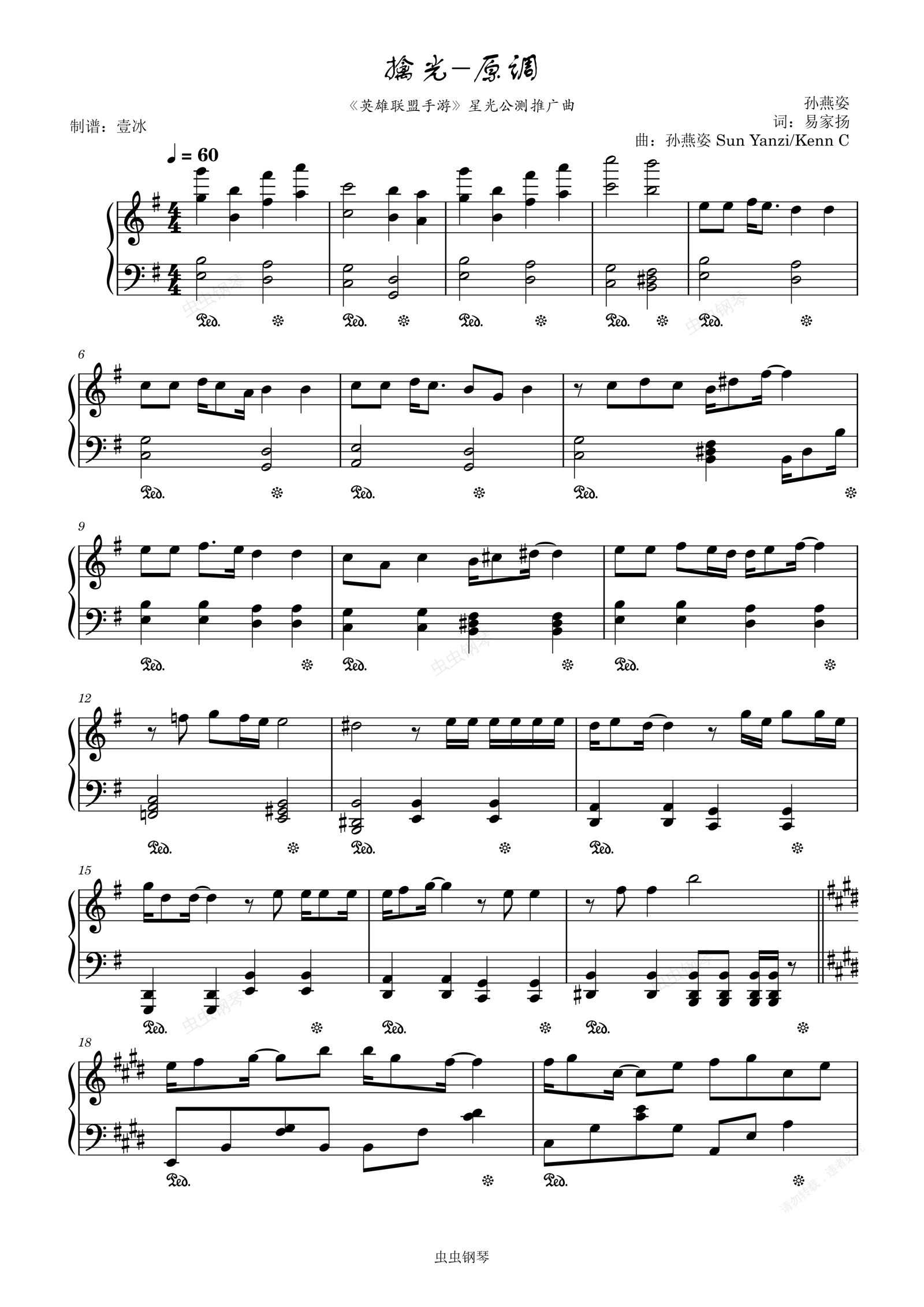 钢琴谱:擒光//《英雄联盟手游》星光公测推广曲-原调版