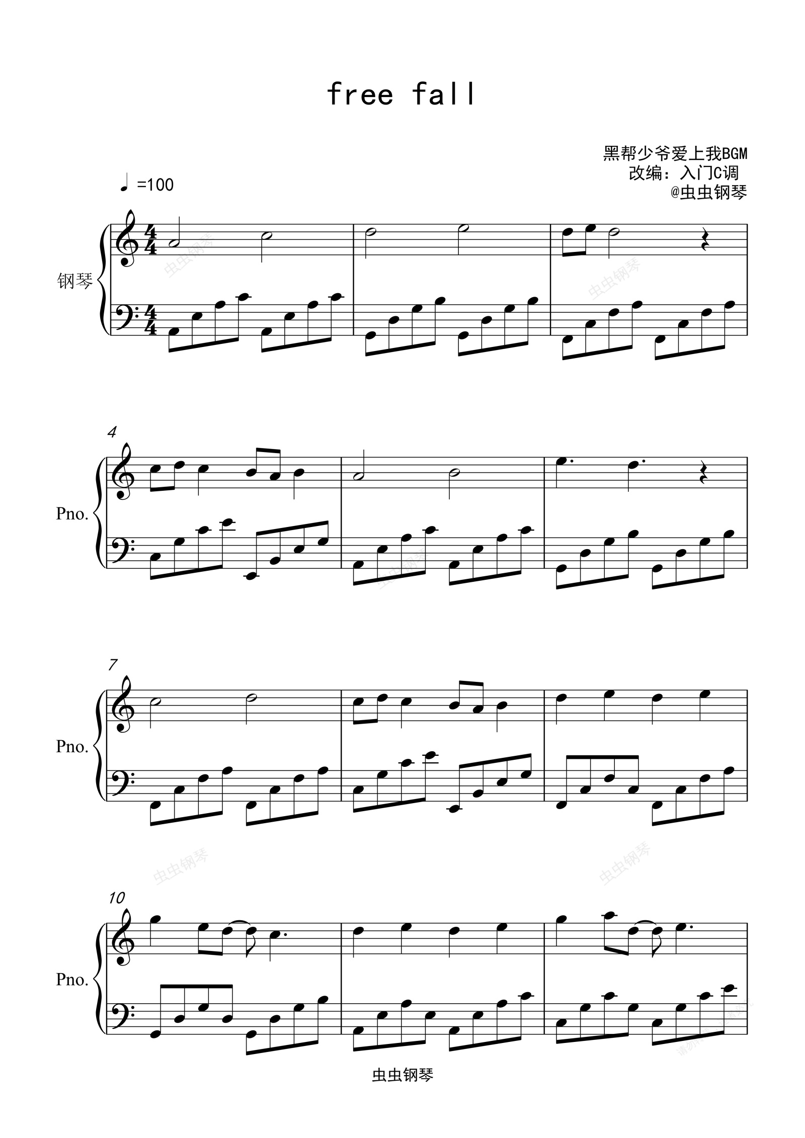 钢琴谱:《黑帮少爷爱上我》BGM《free fall》入门C调简单版