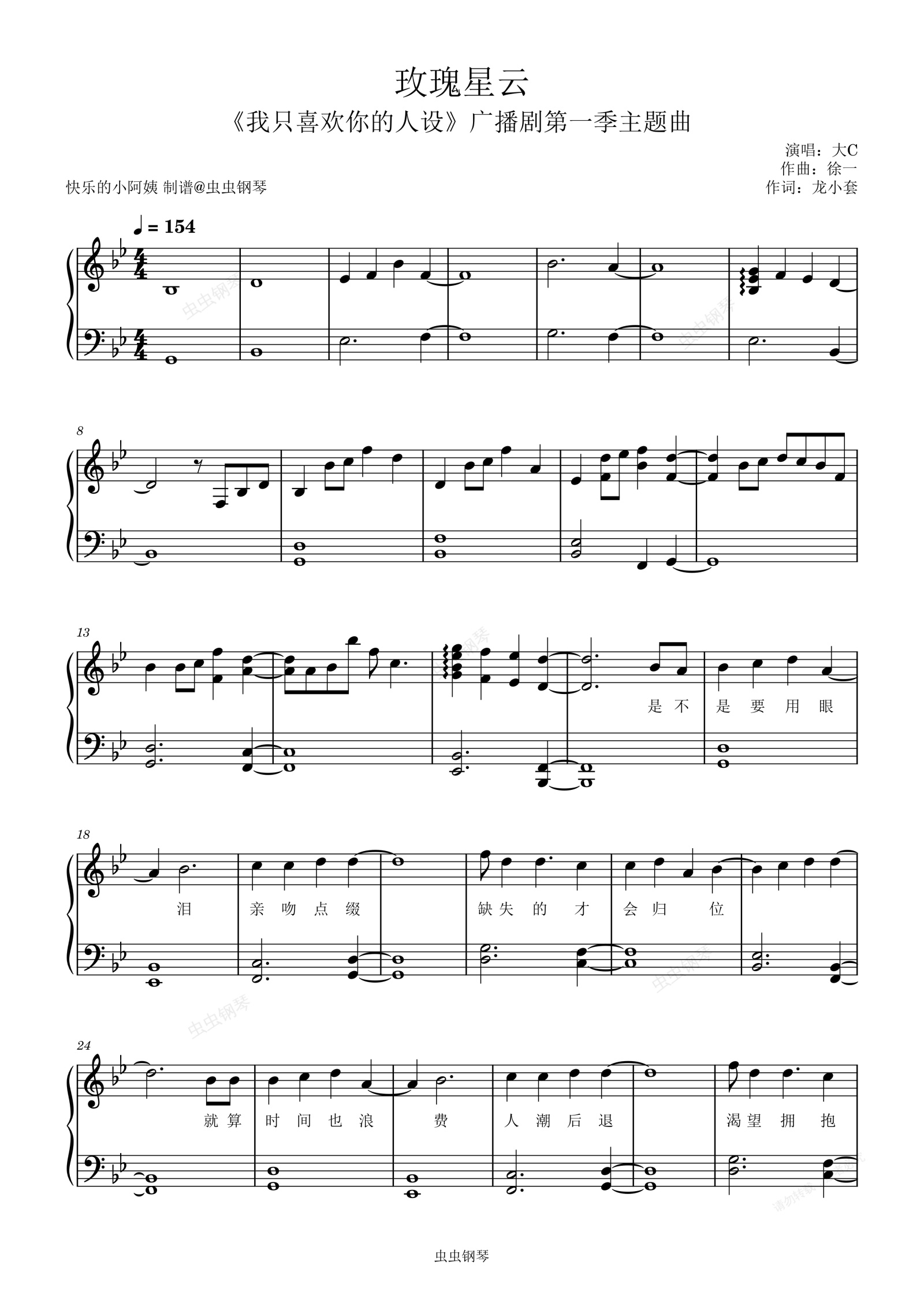 钢琴谱:玫瑰星云-大C-带歌词《我只喜欢你的人设广播剧》主题曲