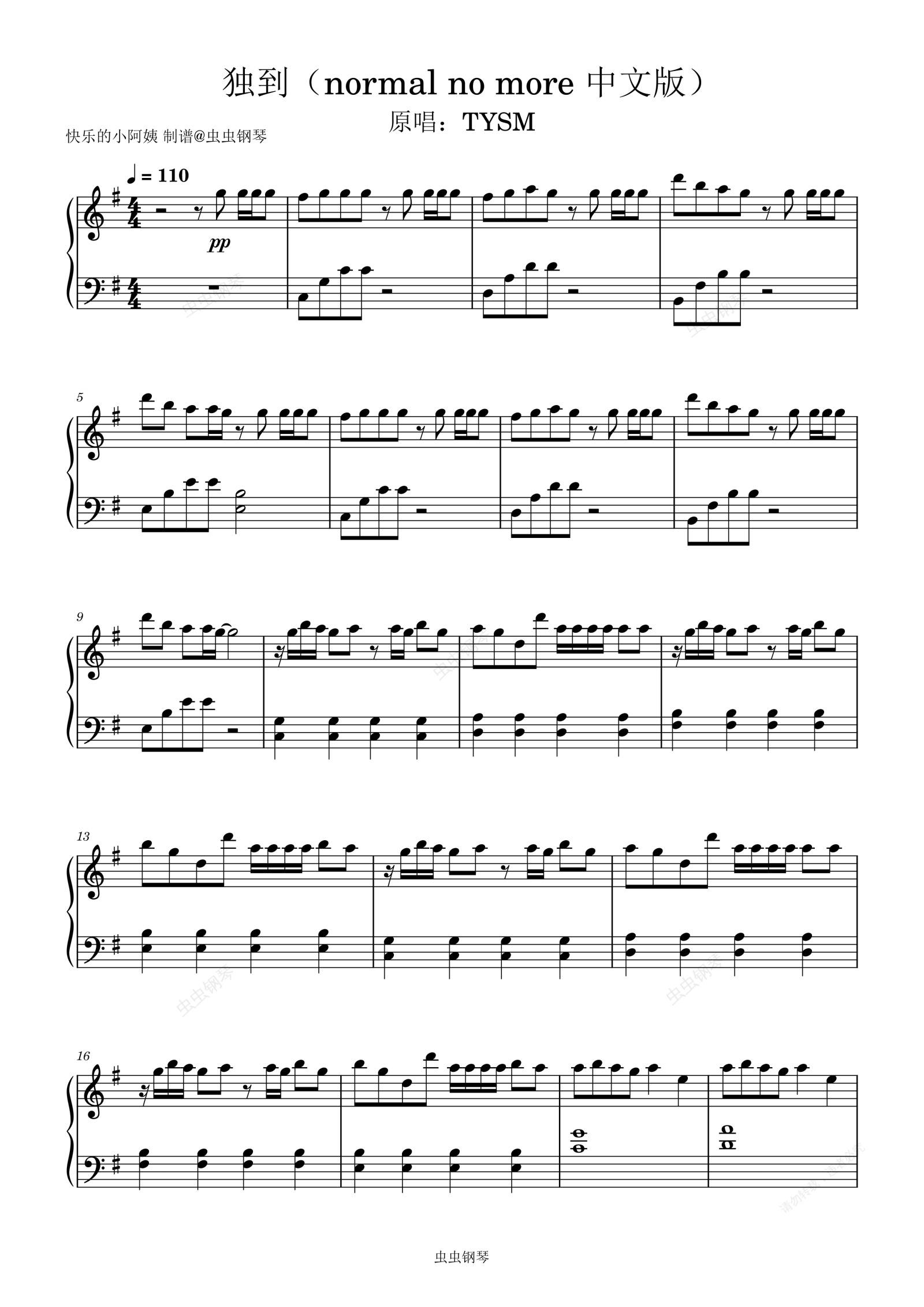 钢琴谱:独到(normal no more)中文版