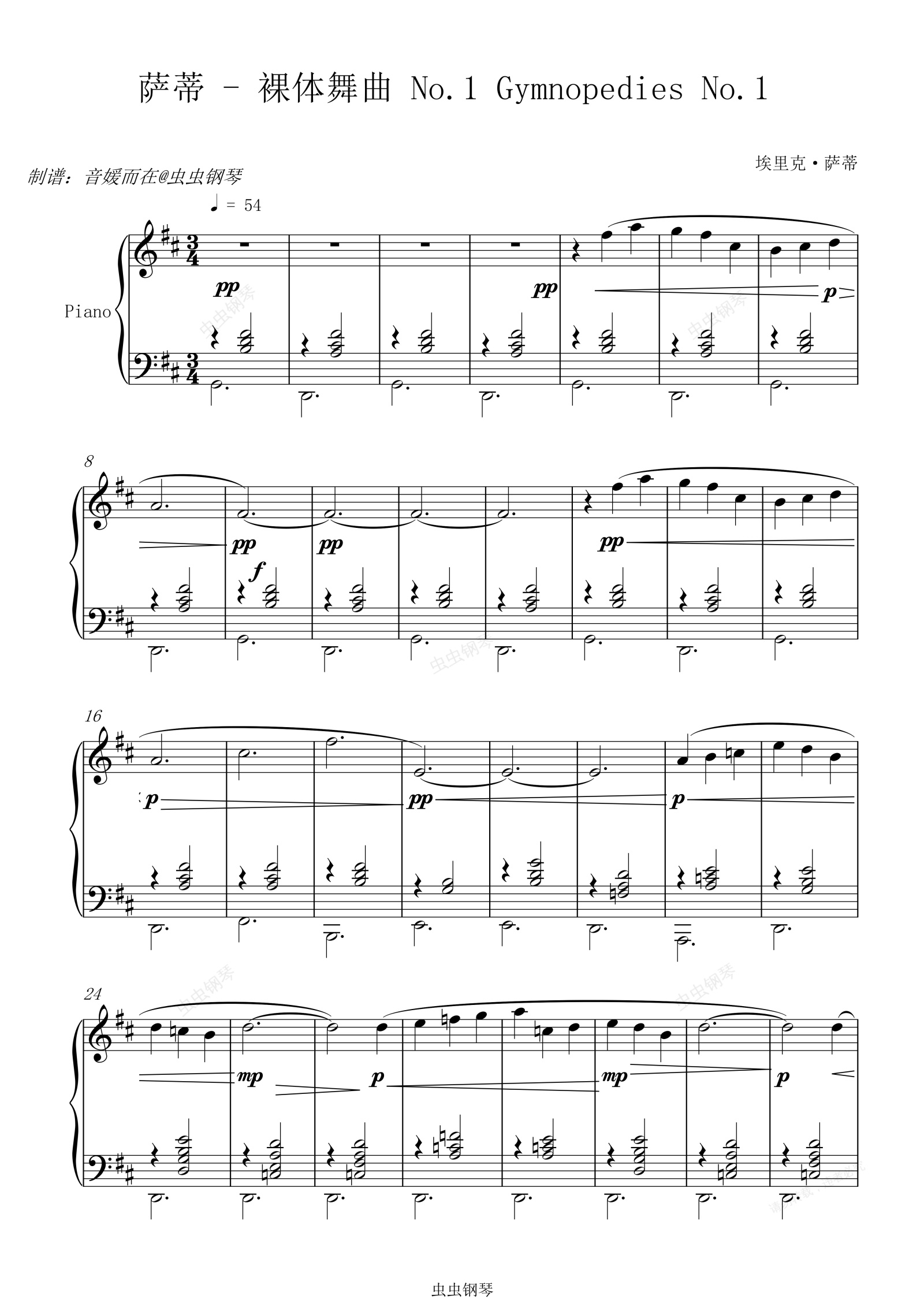 钢琴谱:萨蒂 - 裸体舞曲 No.1 Gymnopedies No.1 【好听到爆炸音乐】