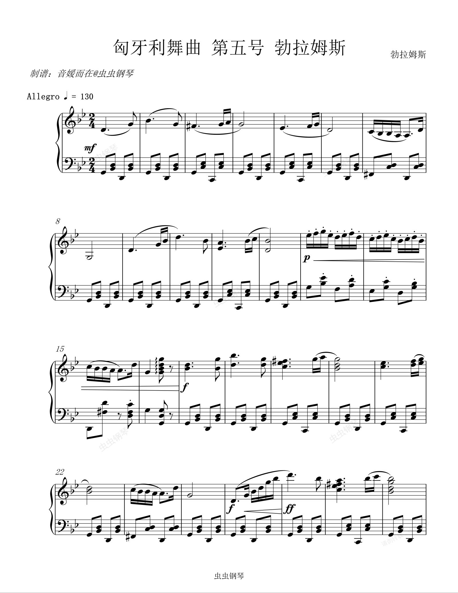 钢琴谱:匈牙利舞曲 第五号 - 勃拉姆斯 【世界名曲】