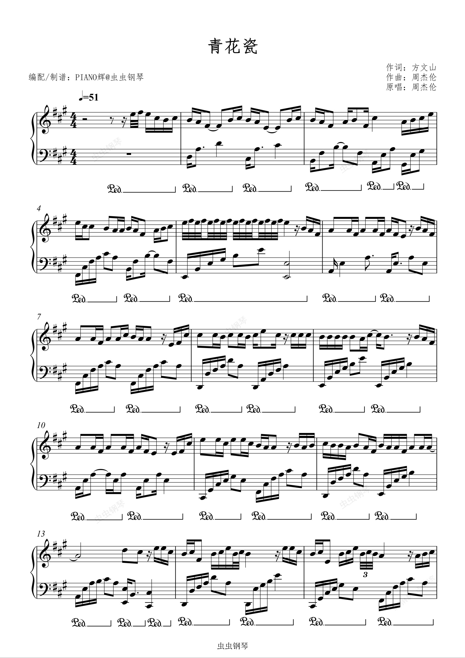 钢琴谱:《青花瓷》周杰伦----PIANO辉制谱