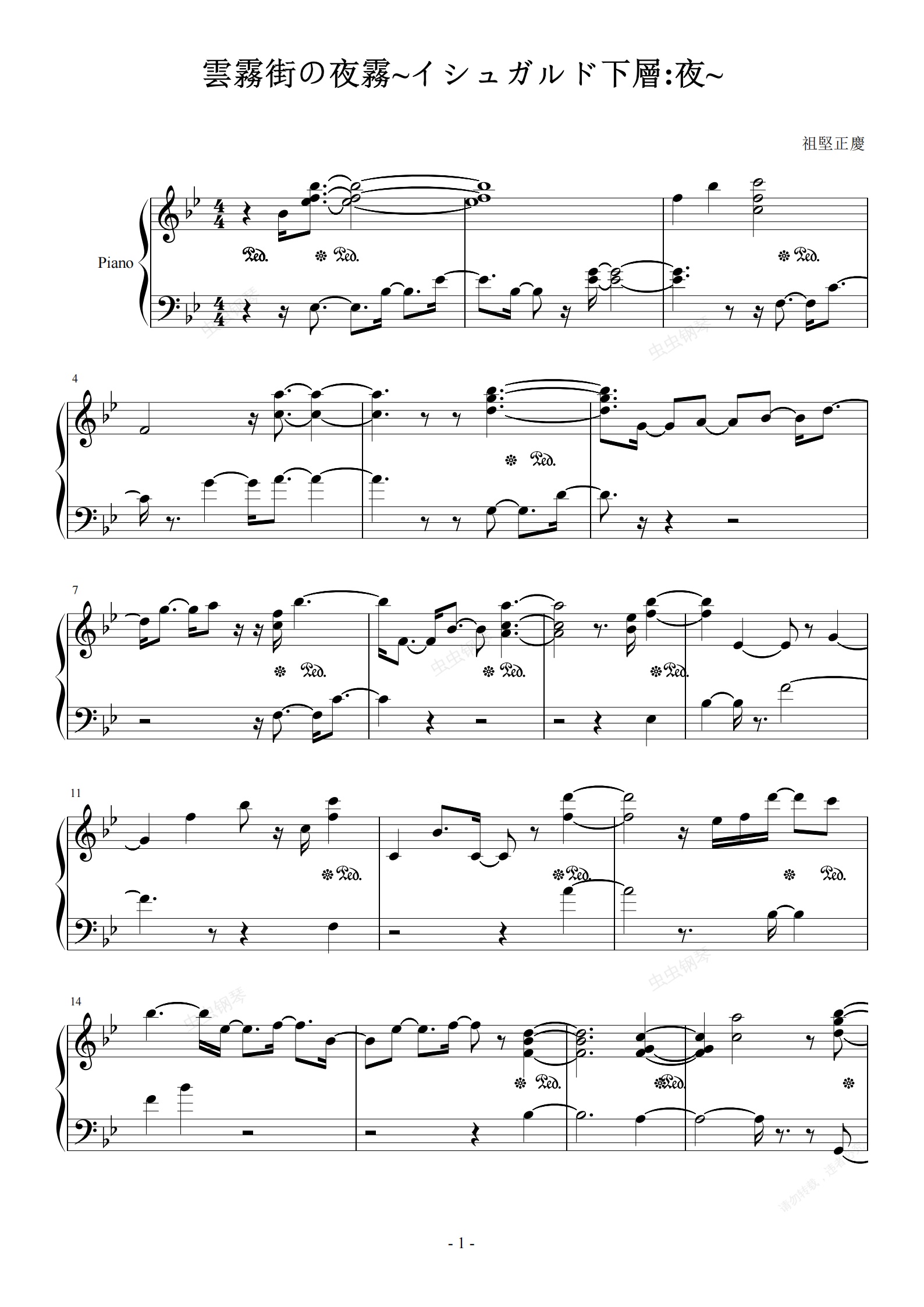 钢琴谱:最终幻想14【伊修加德基础层~夜】